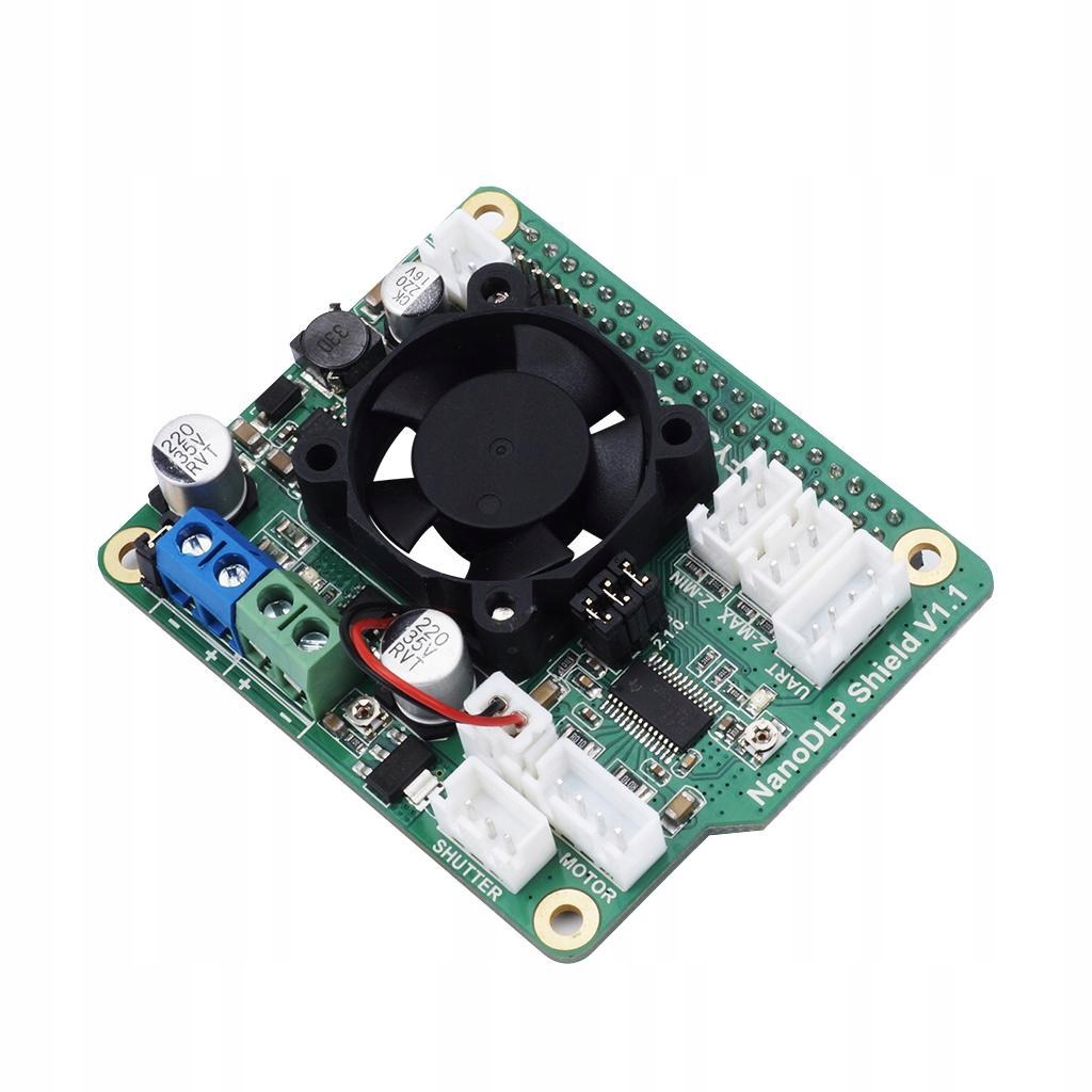Плитка содержит окружность от 9-28 В до 5 В, обеспечивая до 3А, а также требуемый конвертер NanoDLP 9V-28V в 5V@3A, Stepper, Fesper 12V, вентиляторы 12 В (охлаждение).