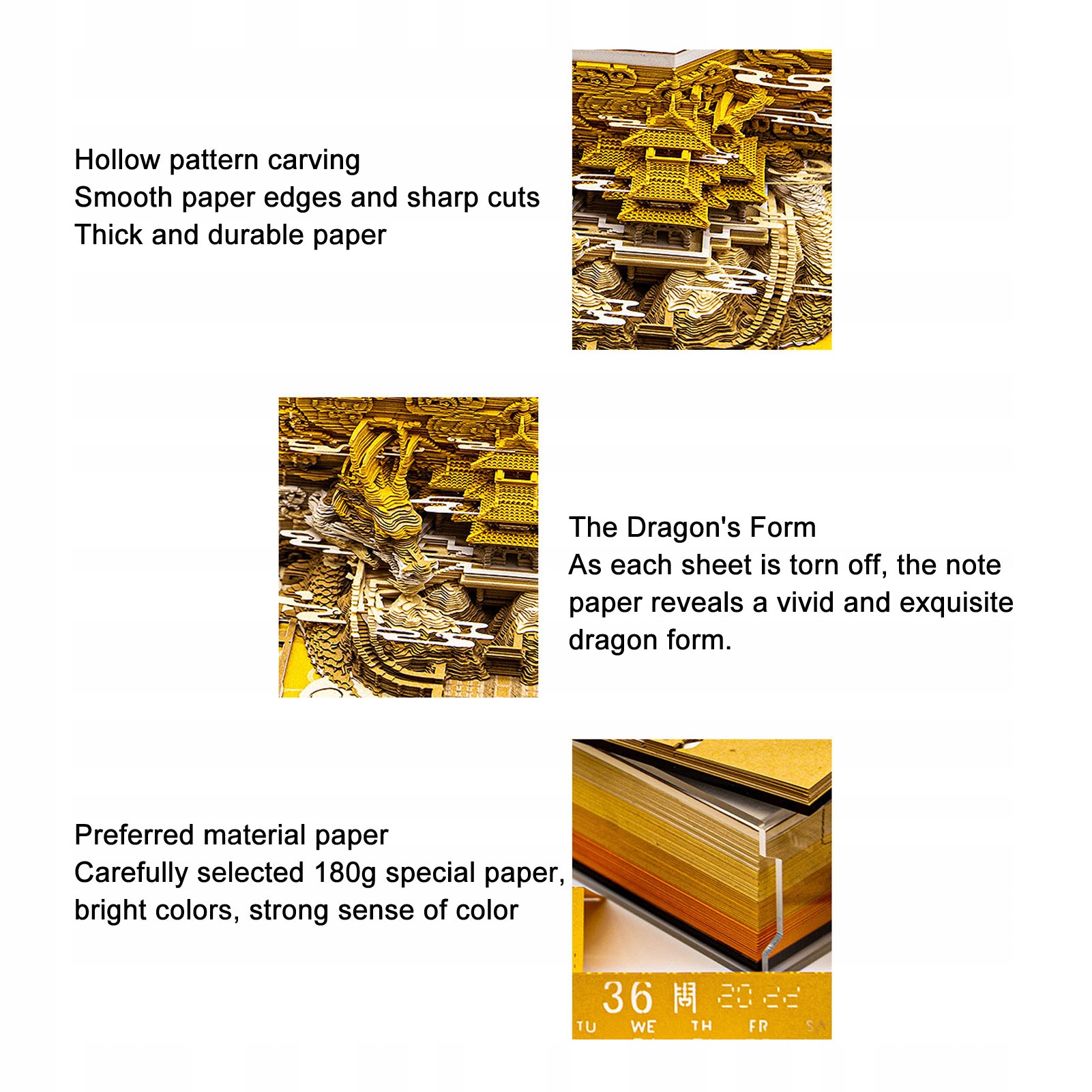 1. Уникальный и привлекательный китайский стиль: 3D-ноутбук имеет дизайн дворца китайского дракона, что делает его ярким и элегантным произведением искусства, сделанным своими руками.