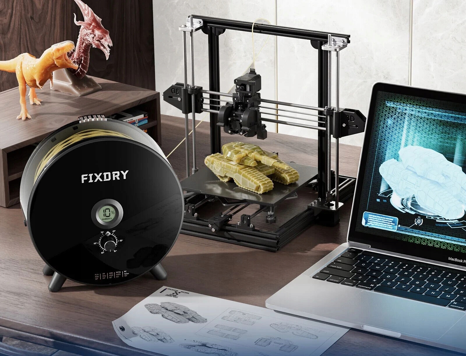 Минимальная влажность после использования FixDRA может достигать 3%. Датчик с высокой точностью в ящике для сушки филаментов может обнаружить температуру и влажность в режиме реального времени, а цифровой экран отображает соответствующее значение, поэтому вы можете оценить эффект сушки.