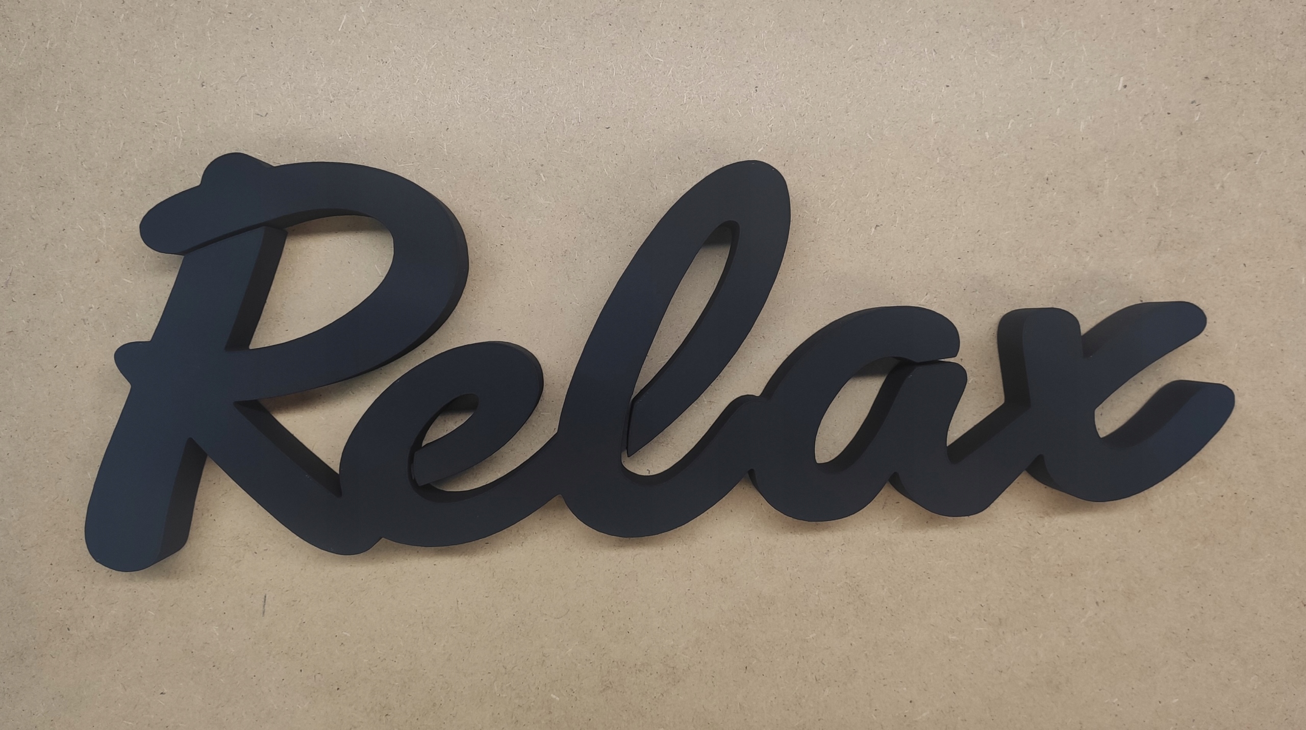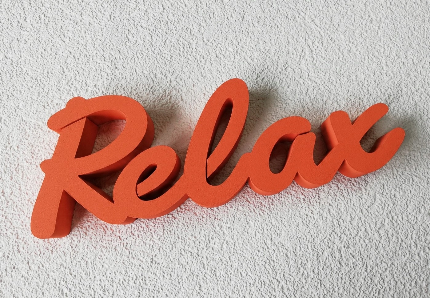 3D літери з написом RELAX, прикріплені до стіни або полиці