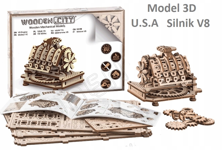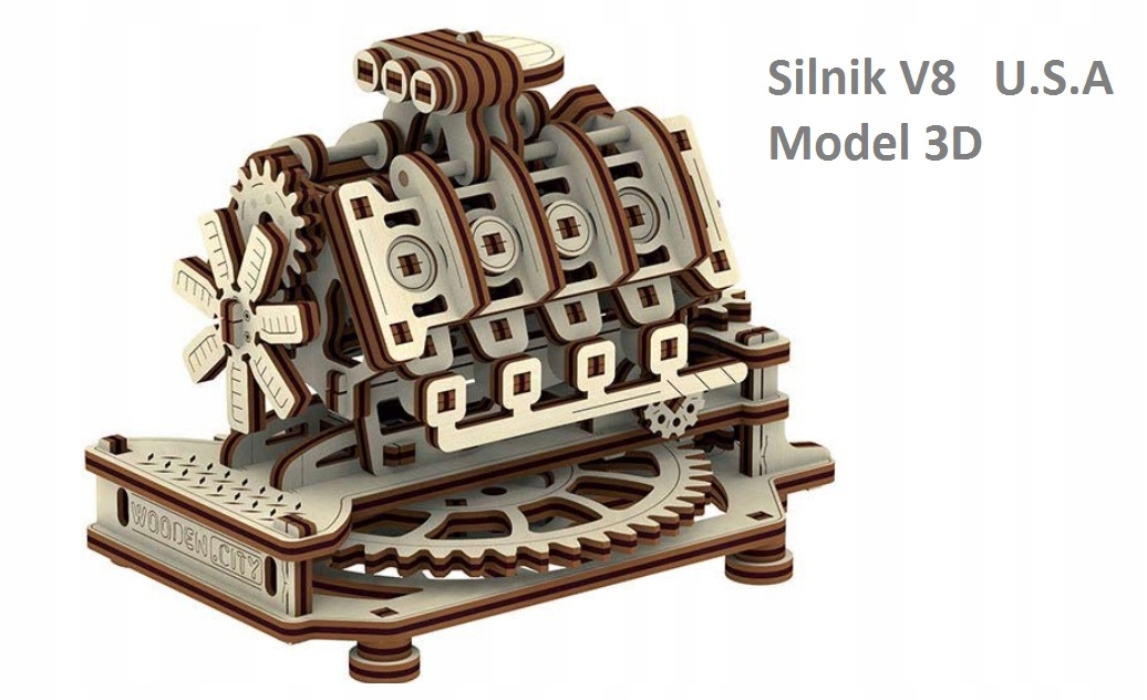 Деревянная 3D-модель двигателя внутреннего сгорания V8, используемого в гоночных автомобилях США