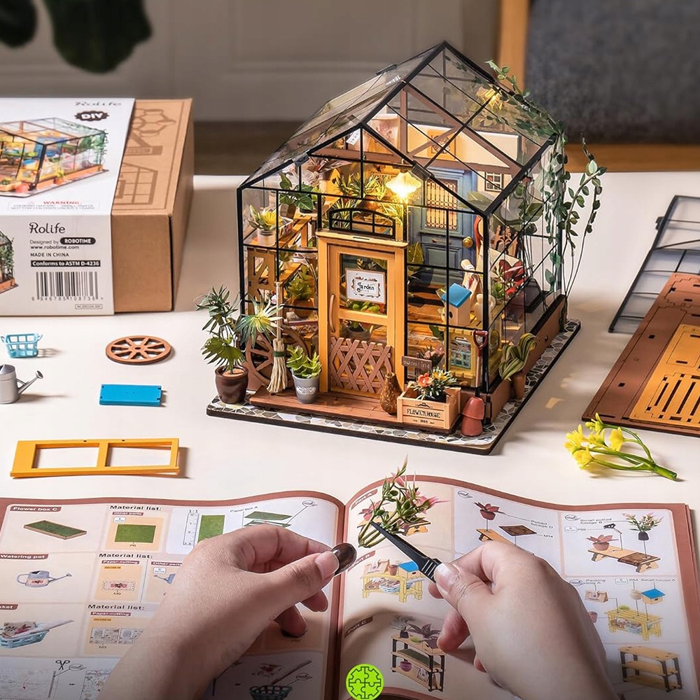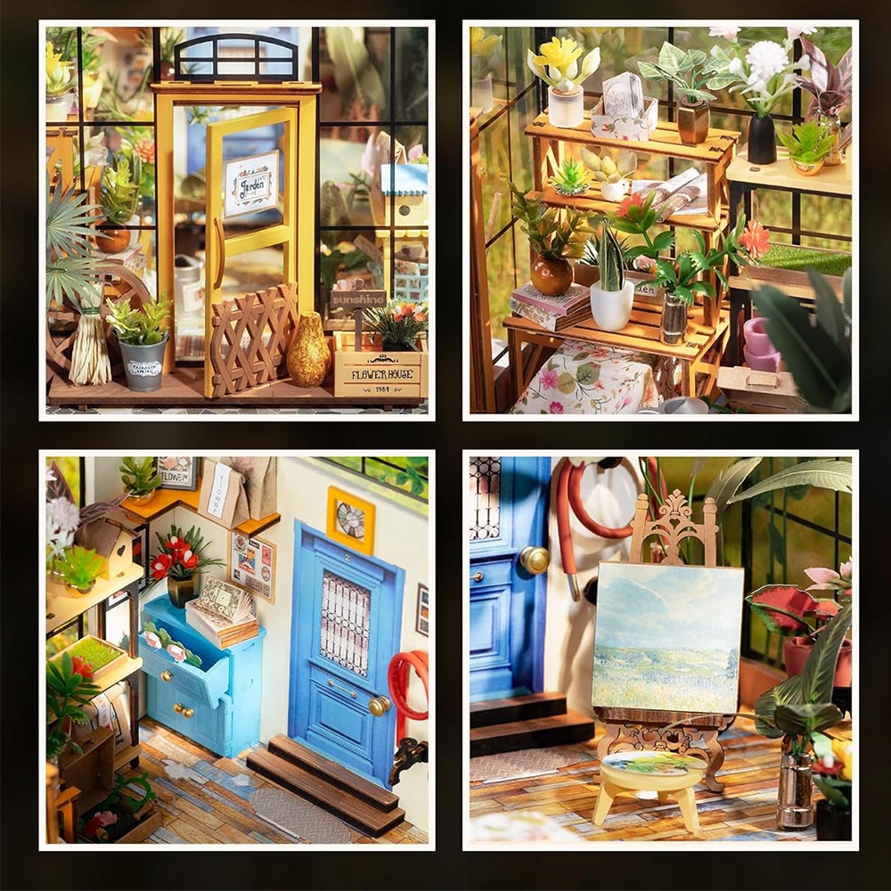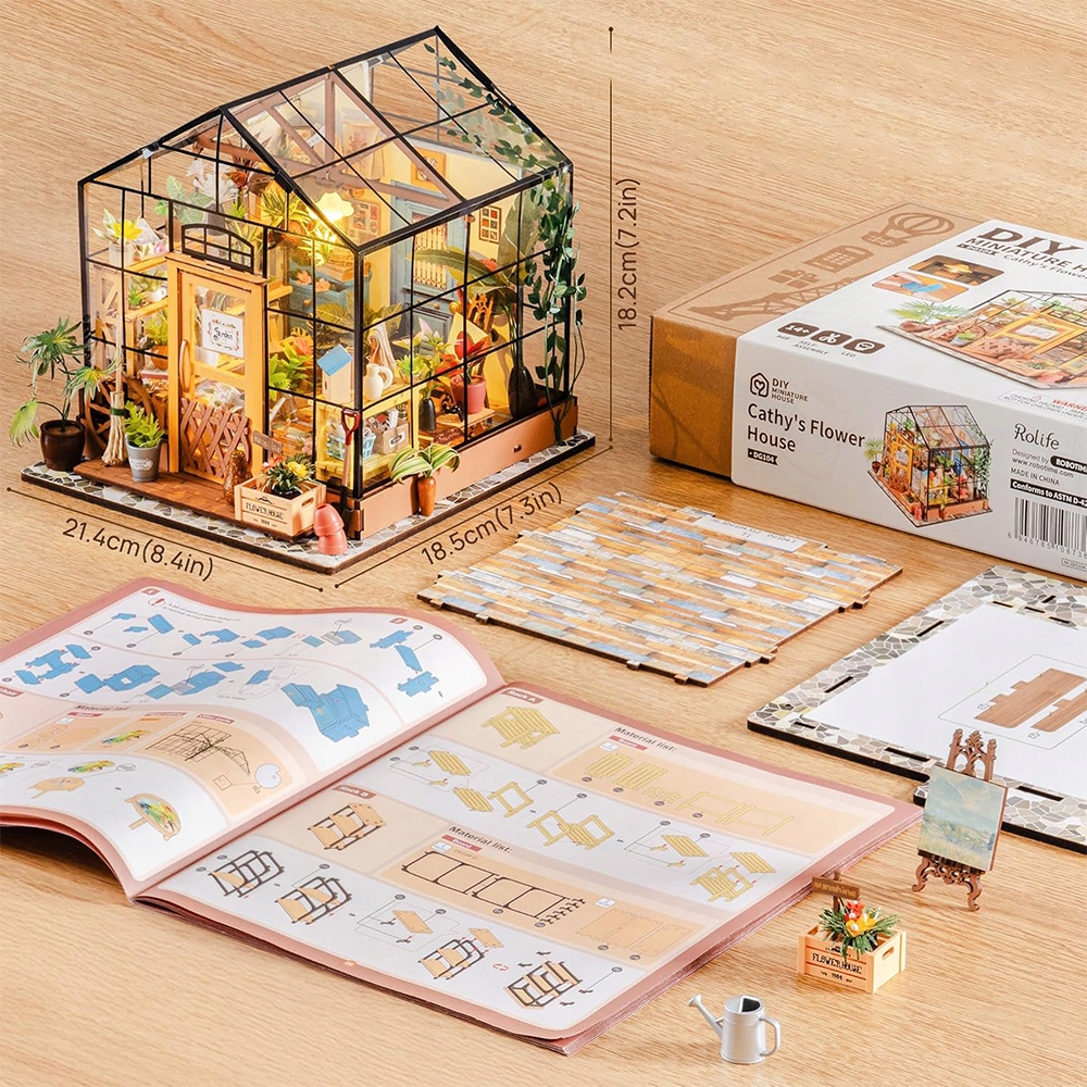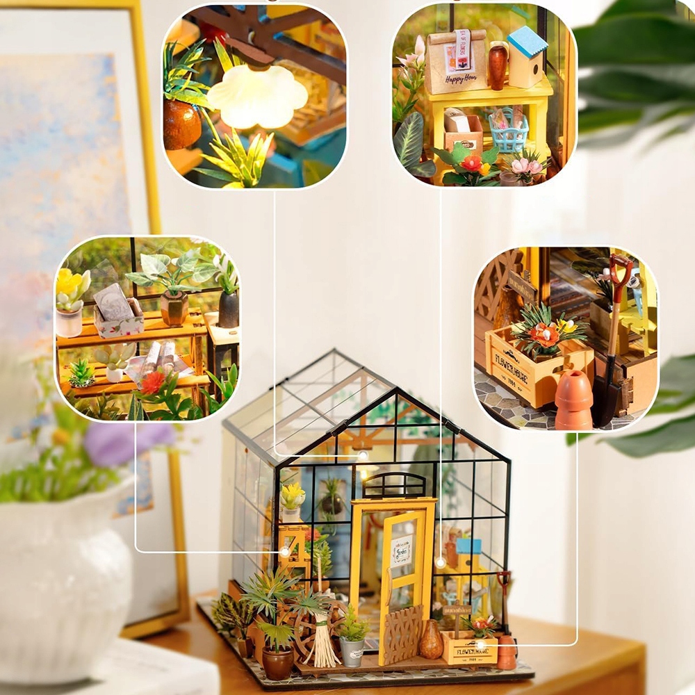 НАБОР 3D ДЕРЕВЯННЫХ ПАЗЗЛОВ МИНИАТЮРНЫЙ ЦВЕТОЧНЫЙ ДОМ СО СВЕТОДИОДНОЙ СВЕТОДИОДНОЙ СДЕЛКОЙ ДЛЯ ДЕТЕЙ