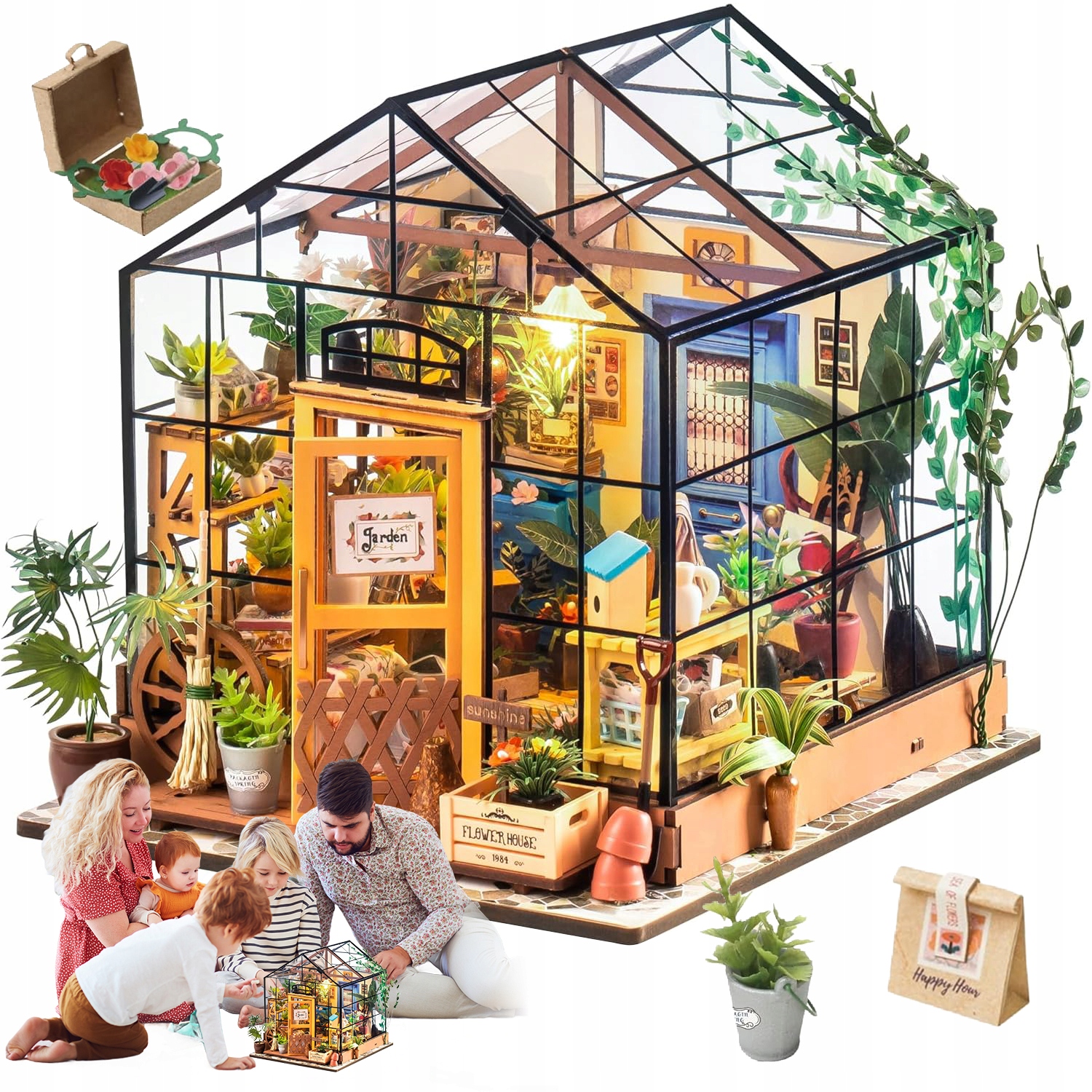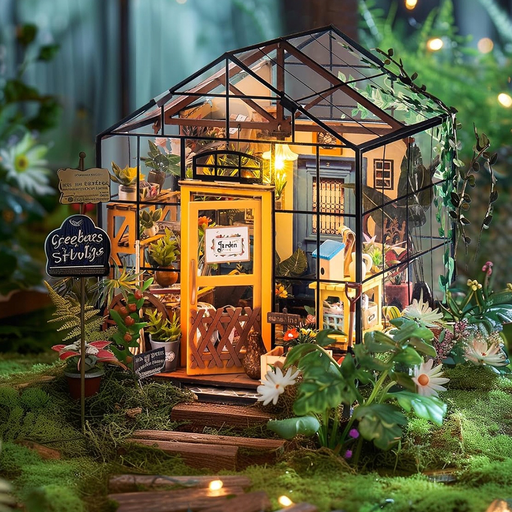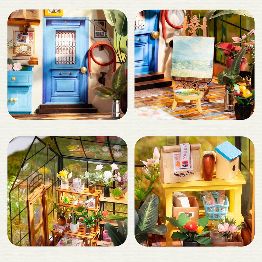 НАБОР 3D ДЕРЕВЯННЫХ ПАЗЗЛОВ МИНИАТЮРНЫЙ ЦВЕТОЧНЫЙ ДОМ СО СВЕТОДИОДНОЙ СВЕТОДИОДНОЙ СДЕЛКОЙ ДЛЯ ДЕТЕЙ