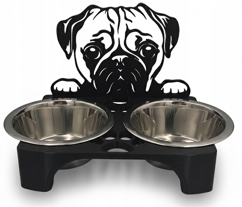 3D подставка для миски для собаки + Миски - Мопс - 2 x 400 мл