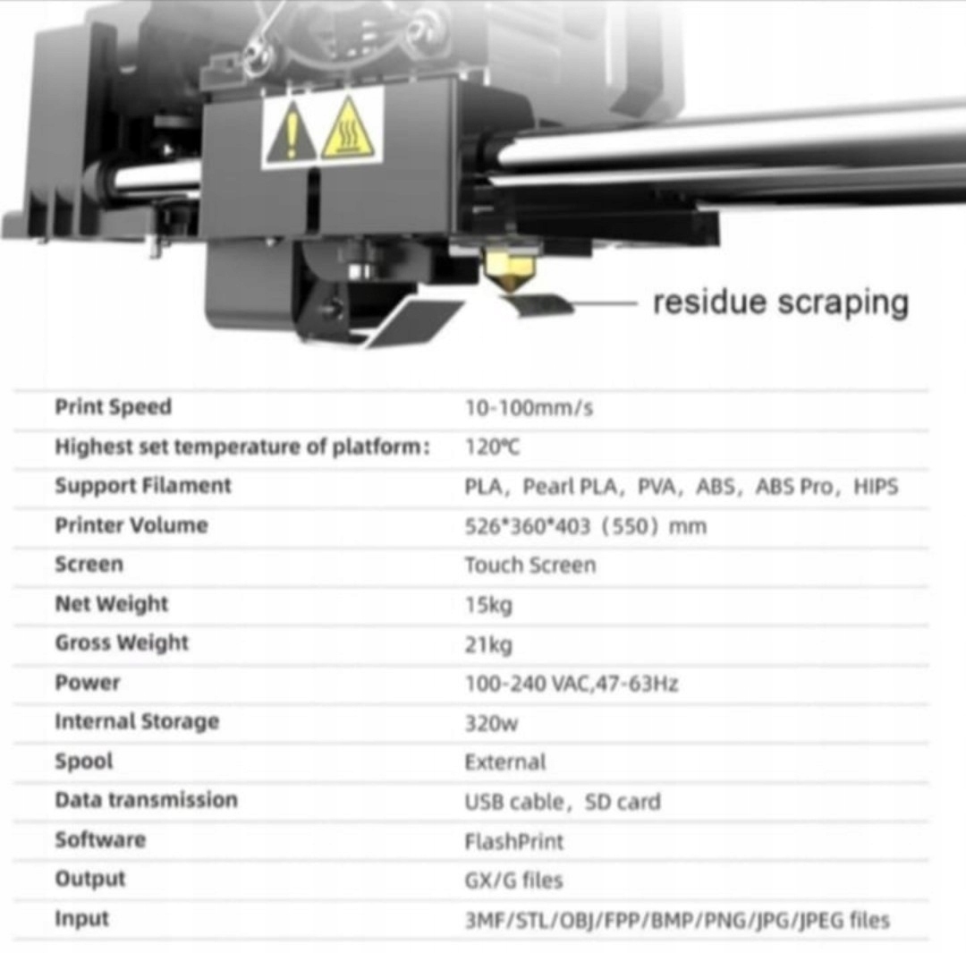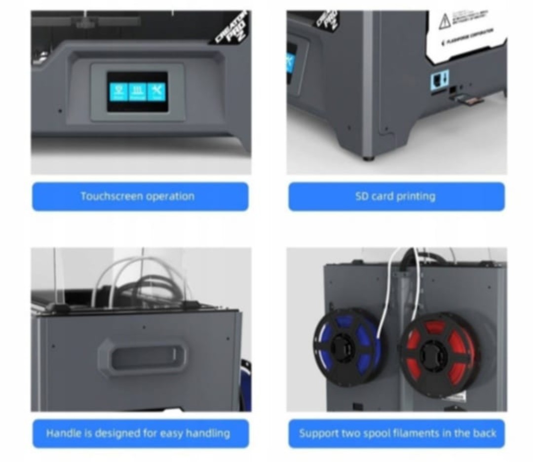 - 3D-принтер Flashforge Creator Pro2 Подогреваемая платформа обеспечивает широкий спектр совместимости нитей: PLA, ABS, Pearl PLA, ABS Pro, PVA, HIPS, PETG. Независимые двойные экструдеры обеспечивают чистую двухцветную печать и удваивают эффективность в режиме дублирования. Бесплатное программное обеспечение FlashForge для нарезки «FlashPrint» полностью совместимо с Creator Pro 2. Большой объем: 200*148*150 мм. Простое монтажное оборудование для быстрого начала работы. Настройте и начните печать за считанные минуты после небольшой ручной сборки. Независимые двойные экструдеры: включайте различные режимы 3D-печати, включая режим зеркала, режим дублирования, режим печати двумя нитями и режим двухцветной печати. 3,5-дюймовый сенсорный экран: точно и быстро настройте 3D-печать с двойной экструзией FDM. Конструкция с защитой от царапин: обеспечивает чистую, аккуратную и гладкую поверхность готовых 3D-объектов, продлевает срок службы рабочей платформы и снижает затраты на техническое обслуживание. Поддержка Open 3D Slicer: FlashPrint обеспечивает легкую 3D-нарезку для быстрой и качественной печати. Поддерживаются другие приложения, такие как SolidWorks, 3D Max. Широкий выбор материалов для 3D-печати: PLA, ABS, PETG и т. д. Creator Pro 2 печатает водорастворимой нитью ПВА и т. д. Поддерживает 2 катушки с нитью сзади, что более удобно для двойной печати. Для быстрого запуска 3D-печати. 2 катушки PLA-нити Flashforge (1000 г/рулон) поставляются с принтером БЕСПЛАТНО. Конструкция с ручкой для удобной переноски машины.
