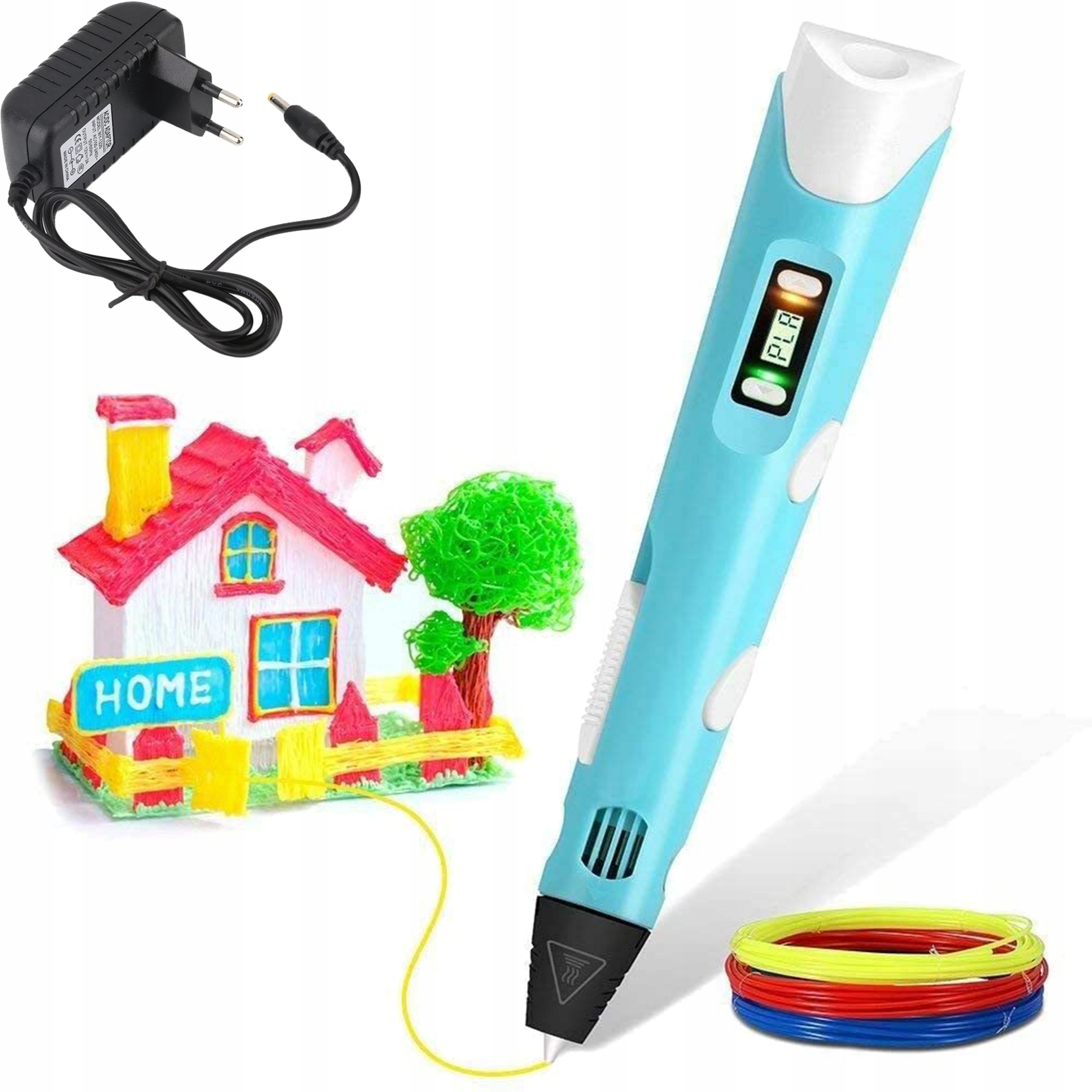 3D-ручка, блок питания, инструкция на английском и польском языках и БЕСПЛАТНО стартовый набор нитей (материала для печати) в 3-х цветах.