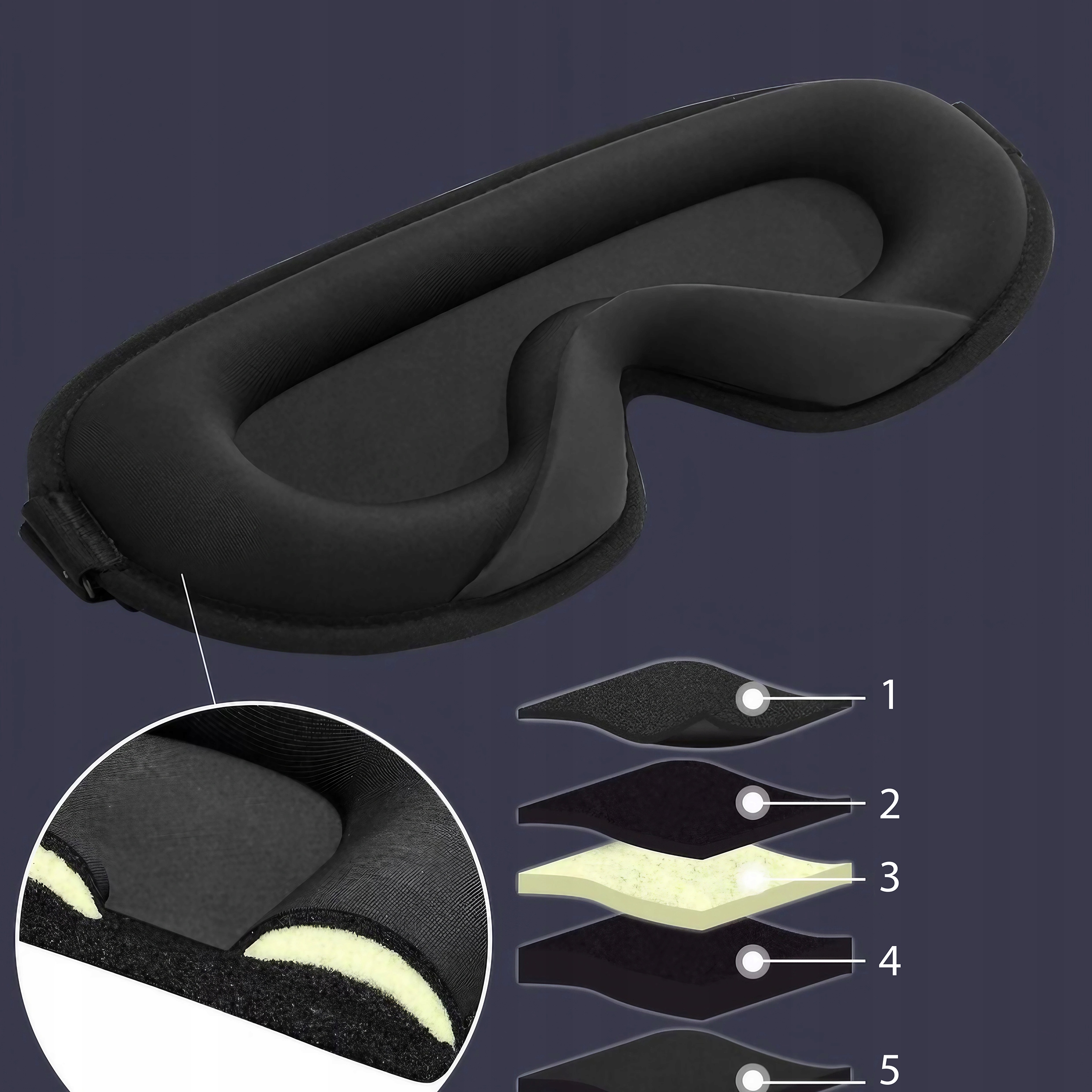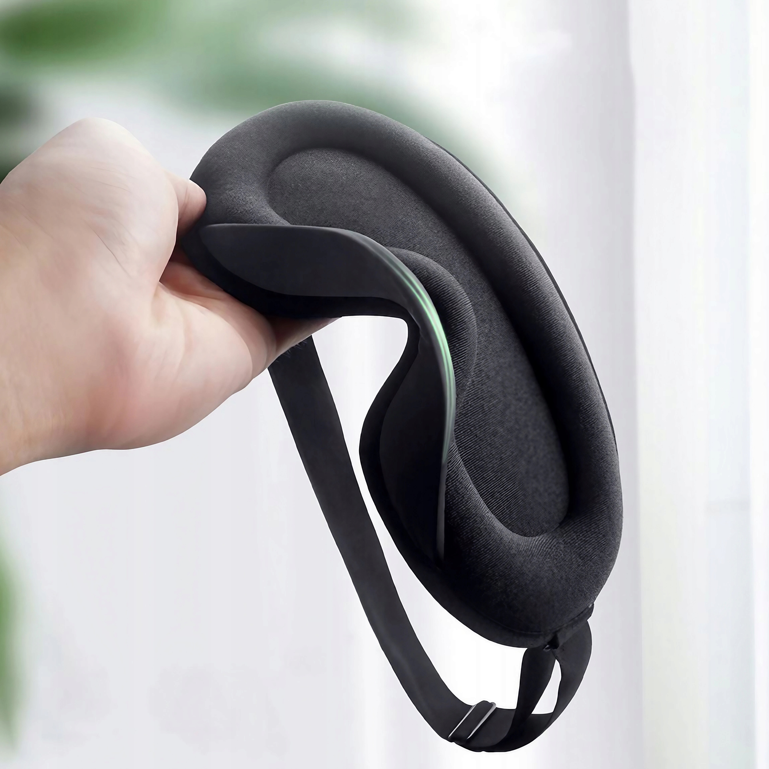 Повязка на голову идеально соответствует форме лица. Его анатомический профиль минимизирует давление на глаза ️🗨️ и обеспечивает полное затемнение, устраняя отвлекающие источники света 🌑.