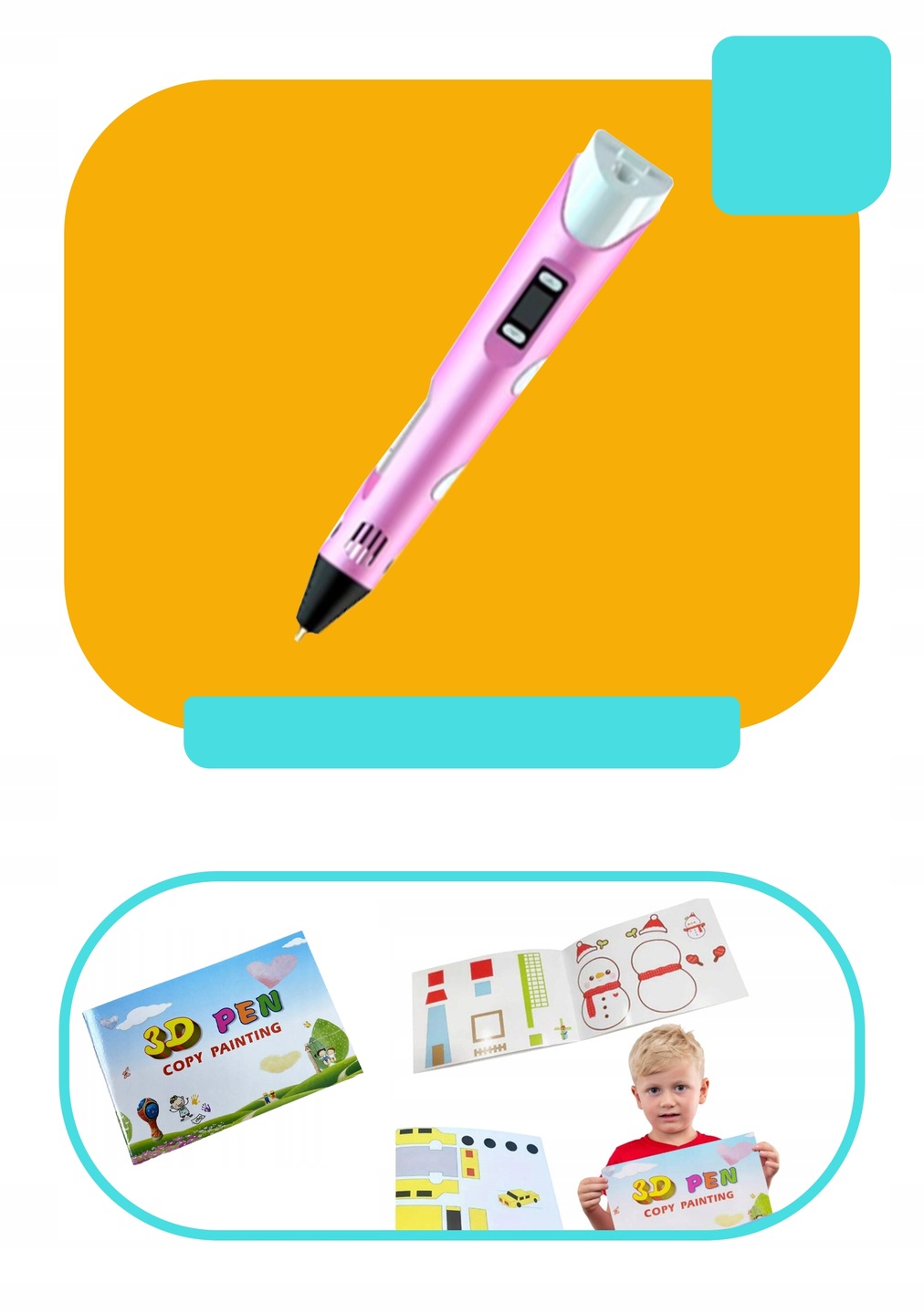 3D-ручка для детей, ручка для принтера розовая + нить 210 м + шаблоны