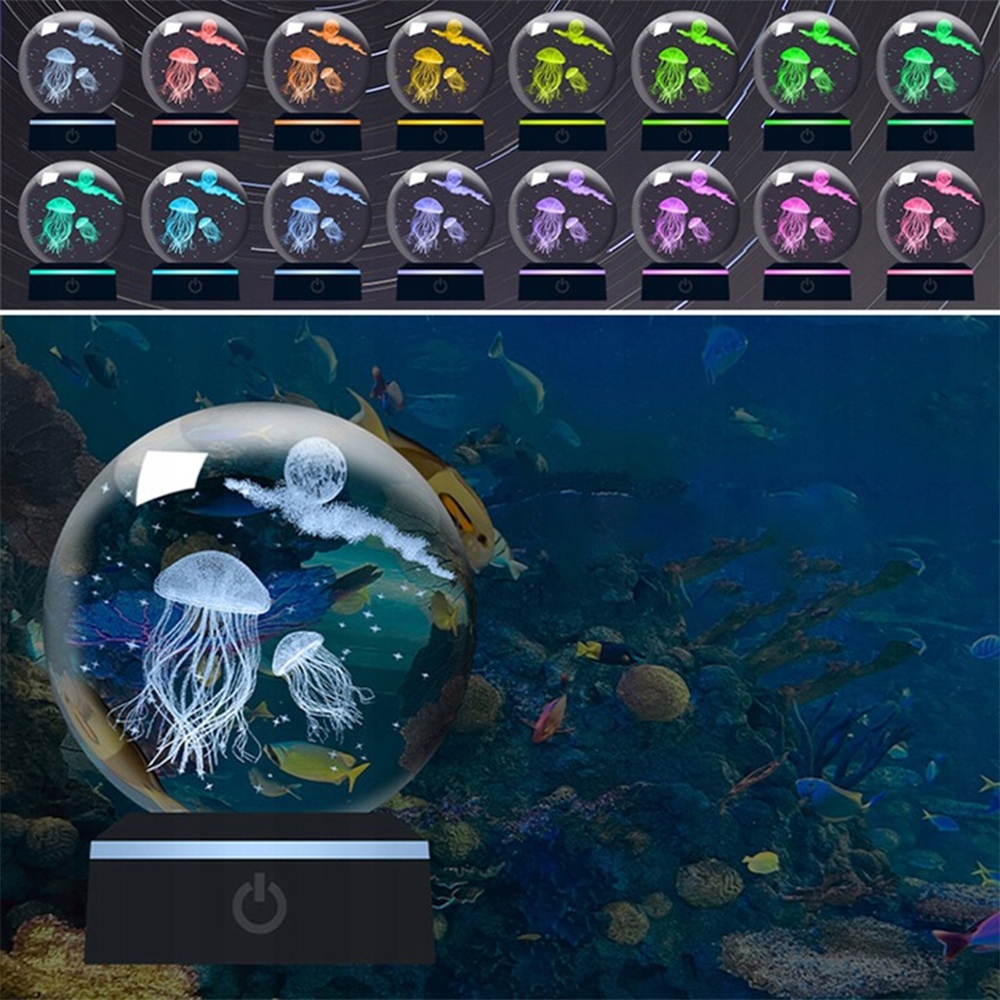 Широкий дизайн красивой океанской медузы: 3D -медуза. Хрустальный шар из высококачественного белого кристалла, благодаря которой мяч более прозрачный и визуально более четкий. Вы можете ясно видеть медузу, играющую в море. Это может быть использовано в качестве настольного украшения.