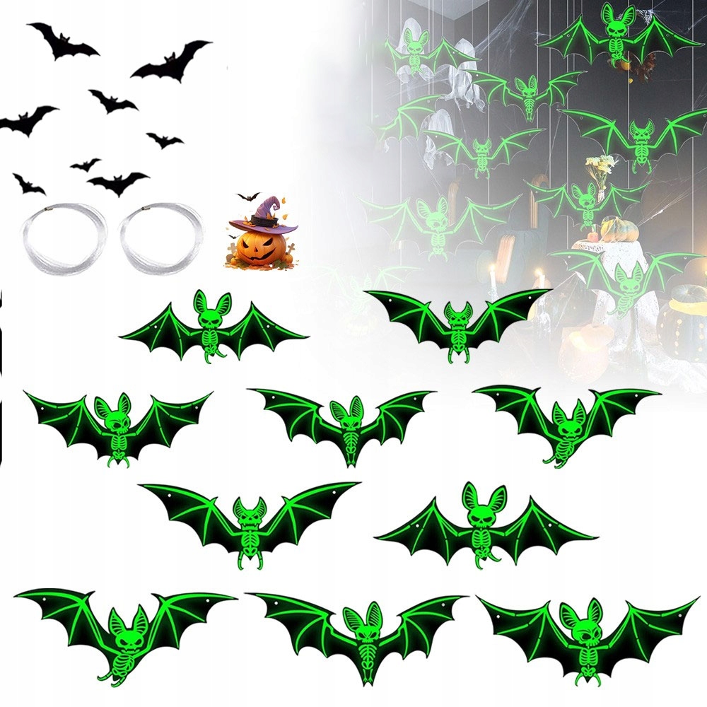 3D СВЕТЯЩИЕСЯ Летучие мыши 10 ШТ. - ФЛУОРЕСЦЕНТНОЕ УКРАШЕНИЕ НА ХЭЛЛОУИН