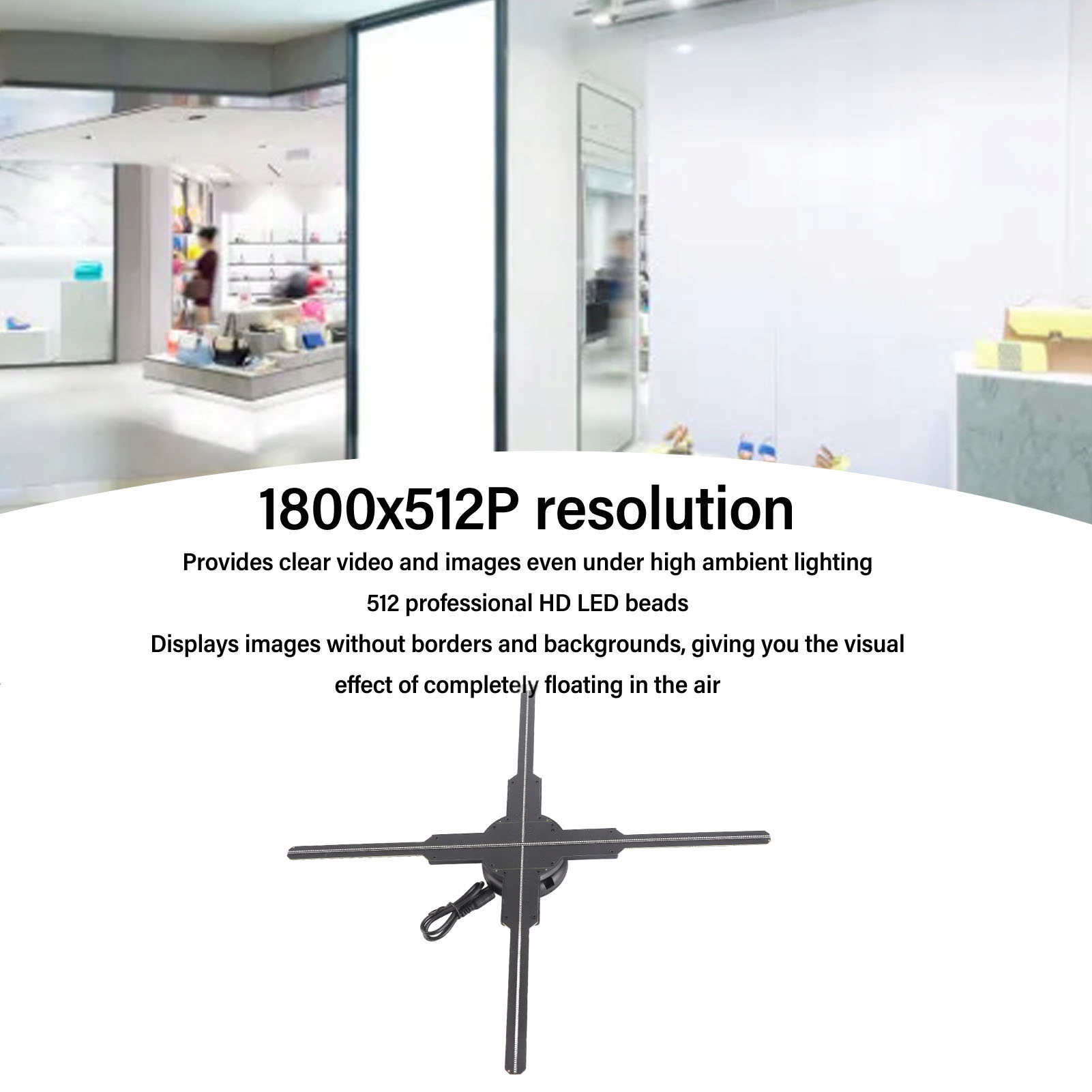 1. Отображение высокого разрешения: предлагая разрешение 1800 x 512p, 3D -фанатная голограмма обеспечивает четкую видимость фильмов и изображений даже в свете окружающей среды. Поддерживает совместное видео, анимацию и изображения.