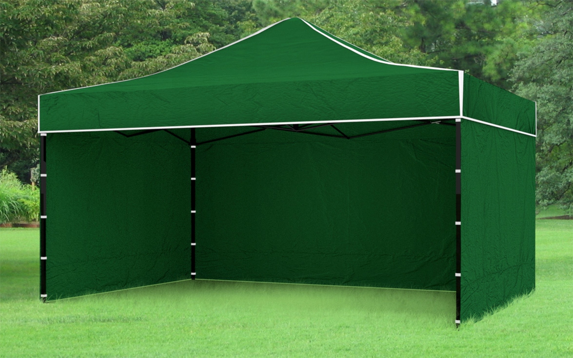 Складной павильон имеет телескопические ножки с регулируемой высотой, которые достигают боковой высоты ок. 2,30 м на самом высоком уровне.