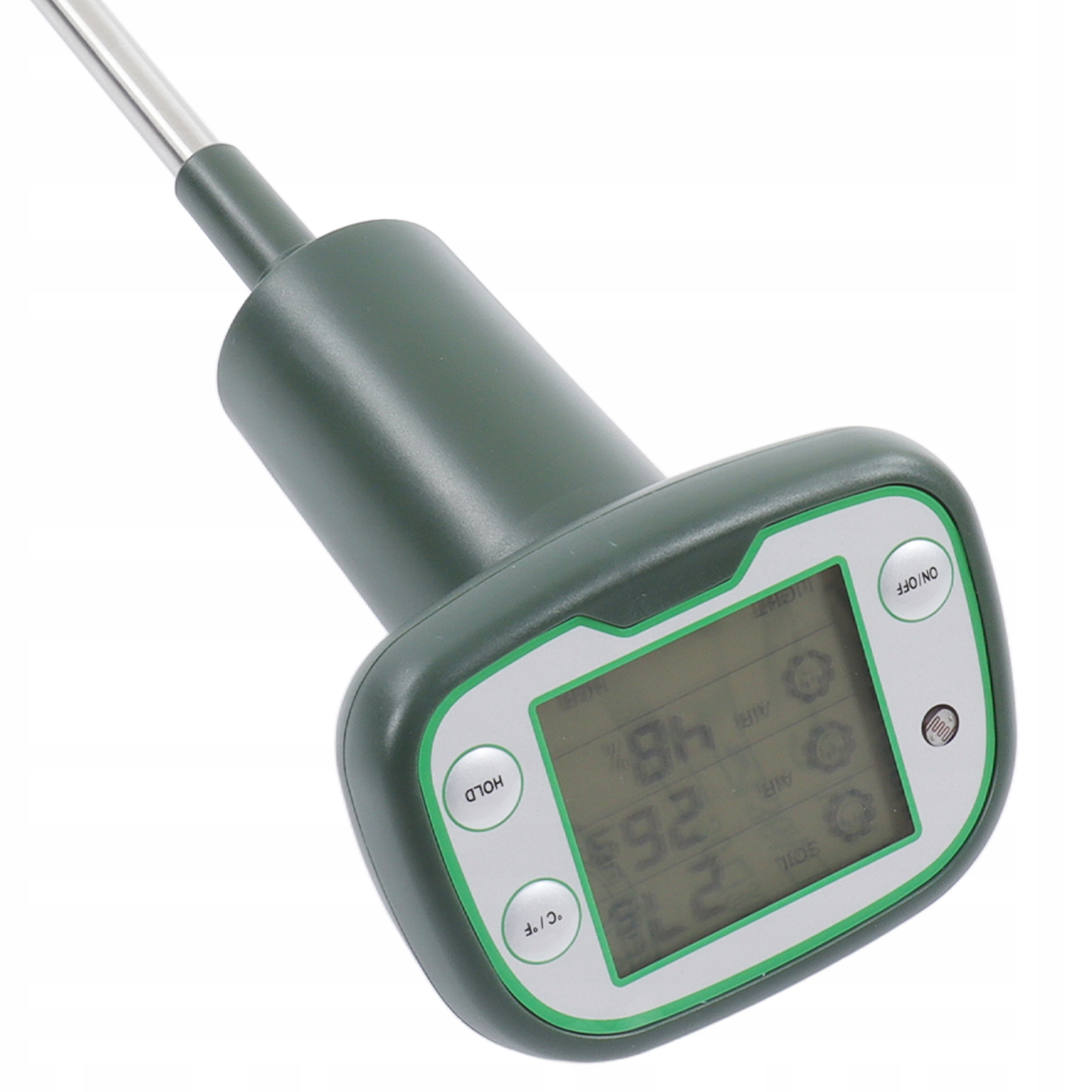3. Большой скрининг дисплея: этот детектор оснащен большим экраном дисплея, который может одновременно демонстрировать температуру почвы, температуру воздуха и влажность