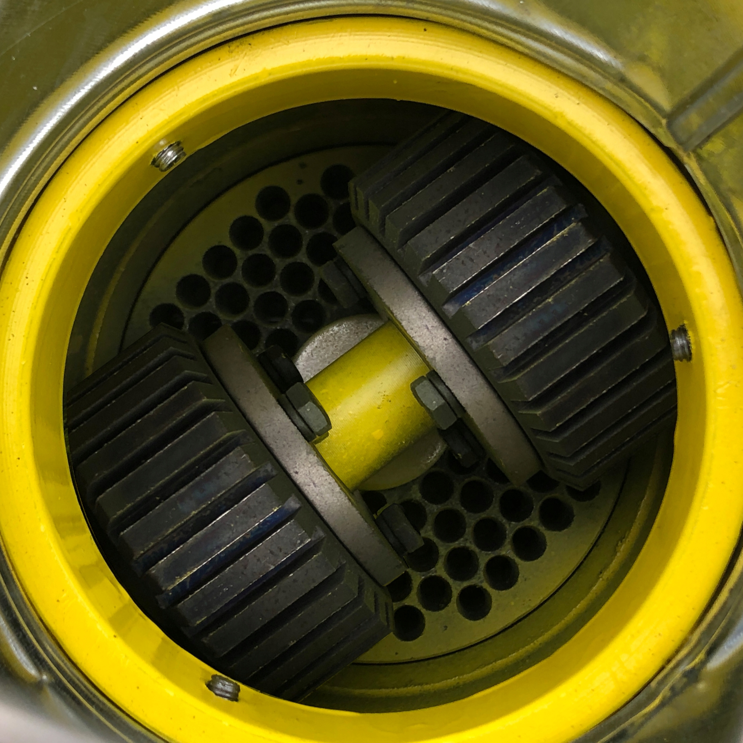✅ Машина оснащена вращающейся матрицей 6 мм, благодаря которой мы получаем пеллеты диаметром 6 мм. Вращающиеся прижимные ролики прижимают материал и вдавливают его в матрицу.