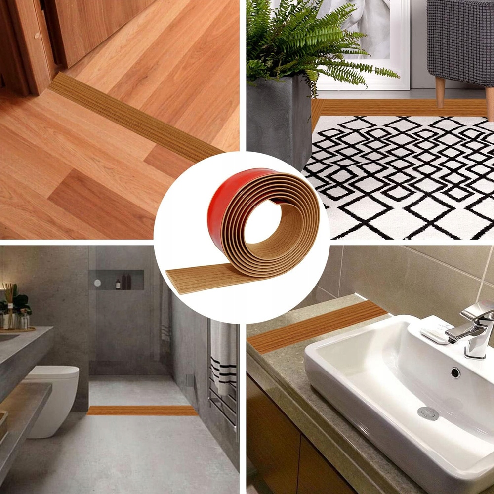 Напольная полоска оснащена двусторонней лентой. Прочная самоклеящаяся конструкция идеально подходит для закрытия щелей в полу и удобна в установке.