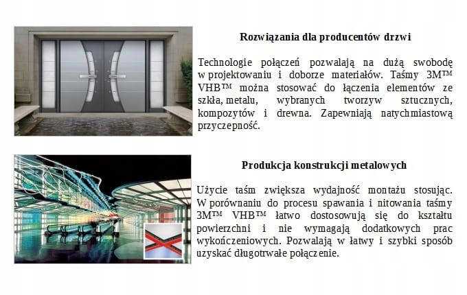 Ленты 3M VHB позволяют точно воспроизвести конструкцию на практике, устраняя неприглядные видимые соединения, такие как винты и болты. Эти высокопрочные двусторонние ленты из акриловой пены позволяют быстро и легко создать прочное соединение, которое со временем становится еще более прочным. Ленты сочетают в себе различные материалы, в том числе: алюминий, сталь, стекло, пластик, окрашенные и порошковые поверхности, обеспечивающие гибкое соединение любых материалов.