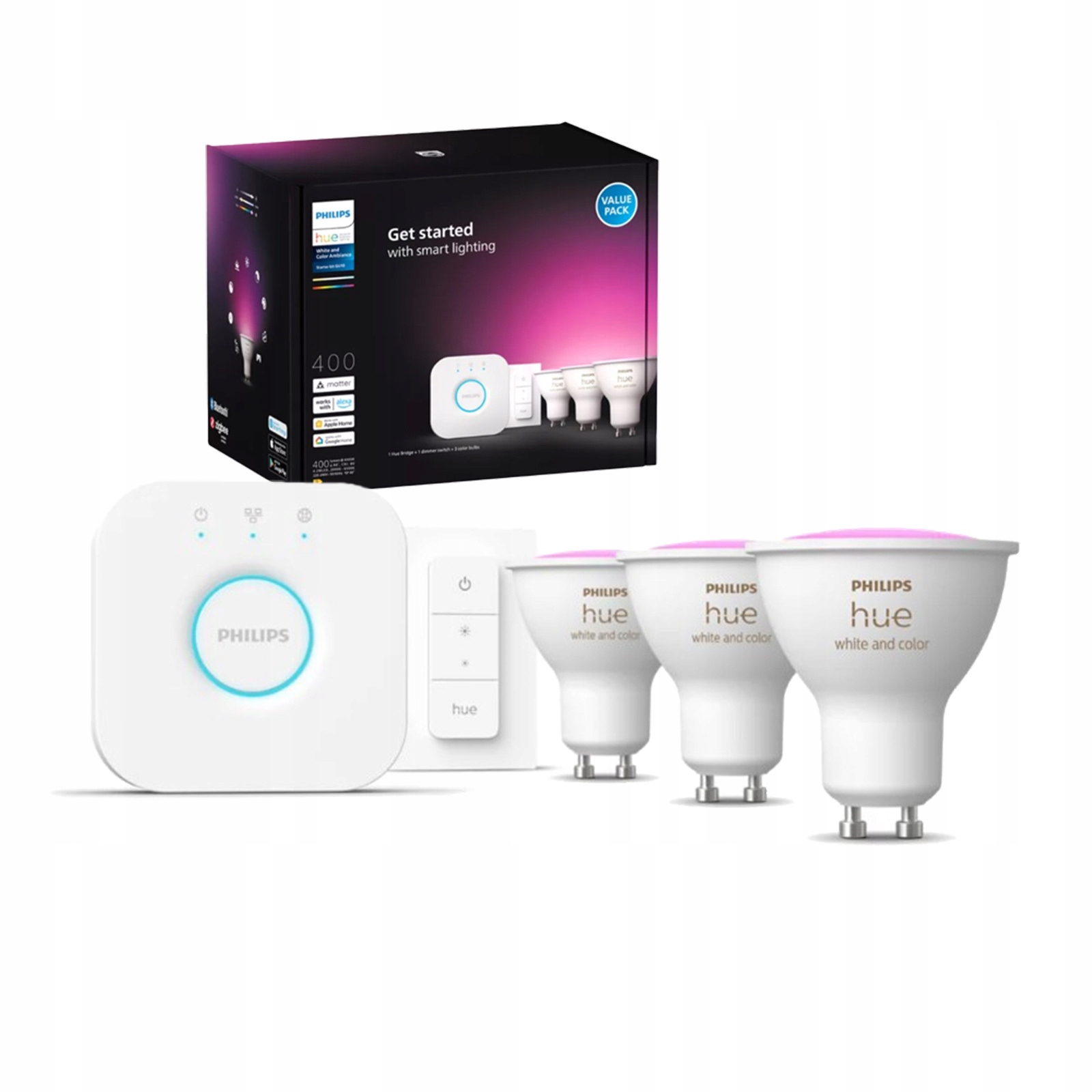 3PAK LED GU10 4.2W CCT RGB Philips Hue + Hue Bridge + Dimmer Switch