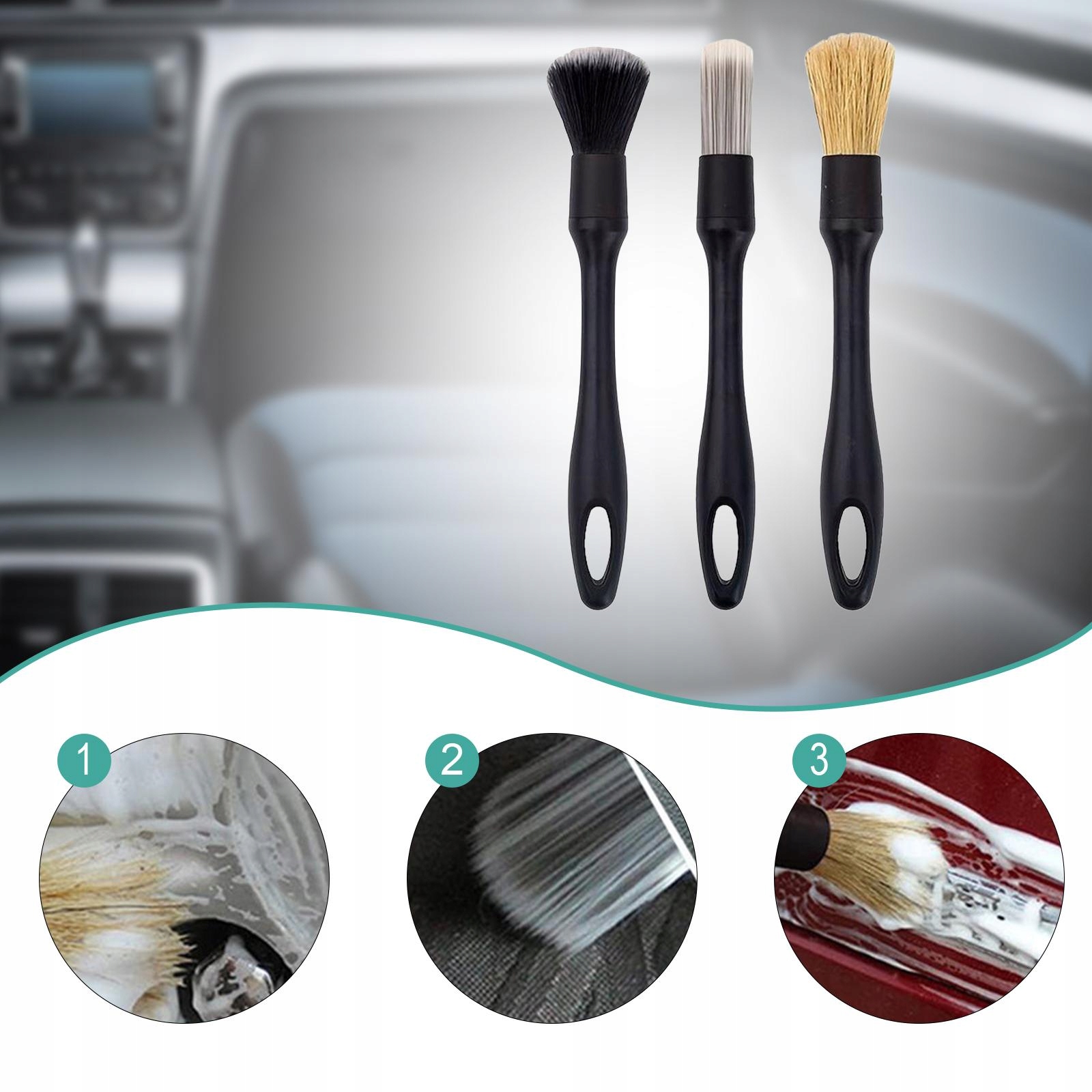 [Бережный уход]: набор кистей для детейлинга автомобиля высокой плотности предназначен для таких областей, как приборные панели, обеспечивая тщательную очистку без царапин и повреждений.