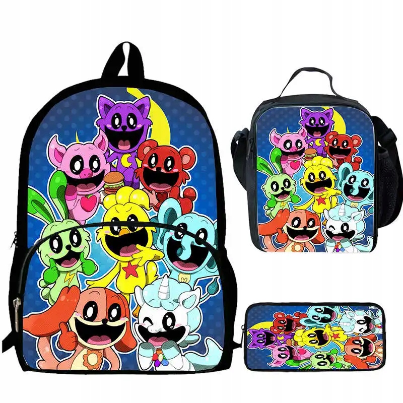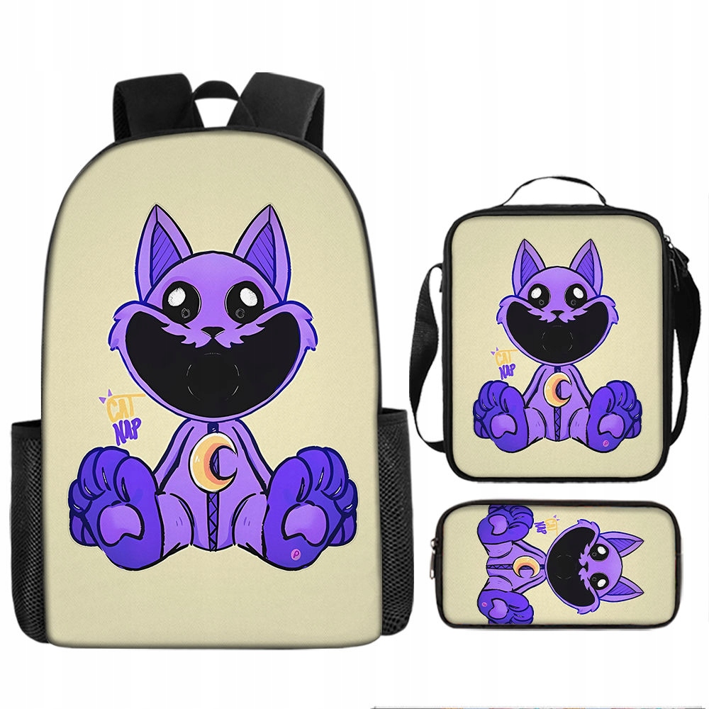 3pcs крупный рюкзак -карандаш корпус Catnap улыбающийся твари для детей