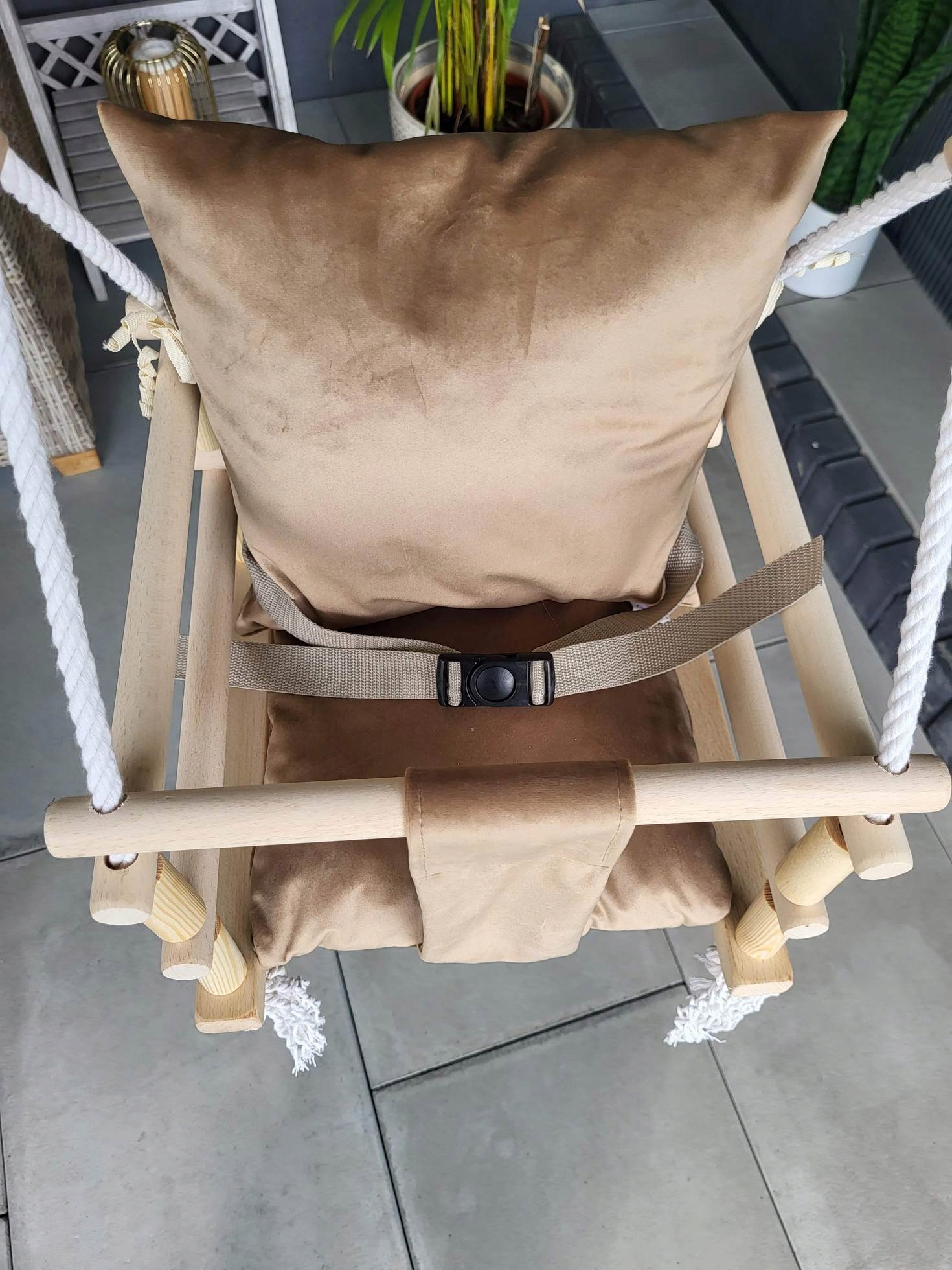 Качели изготовлены из нежного бархатно-плюшевого материала, очень мягкого и приятного на ощупь и очень прочного.