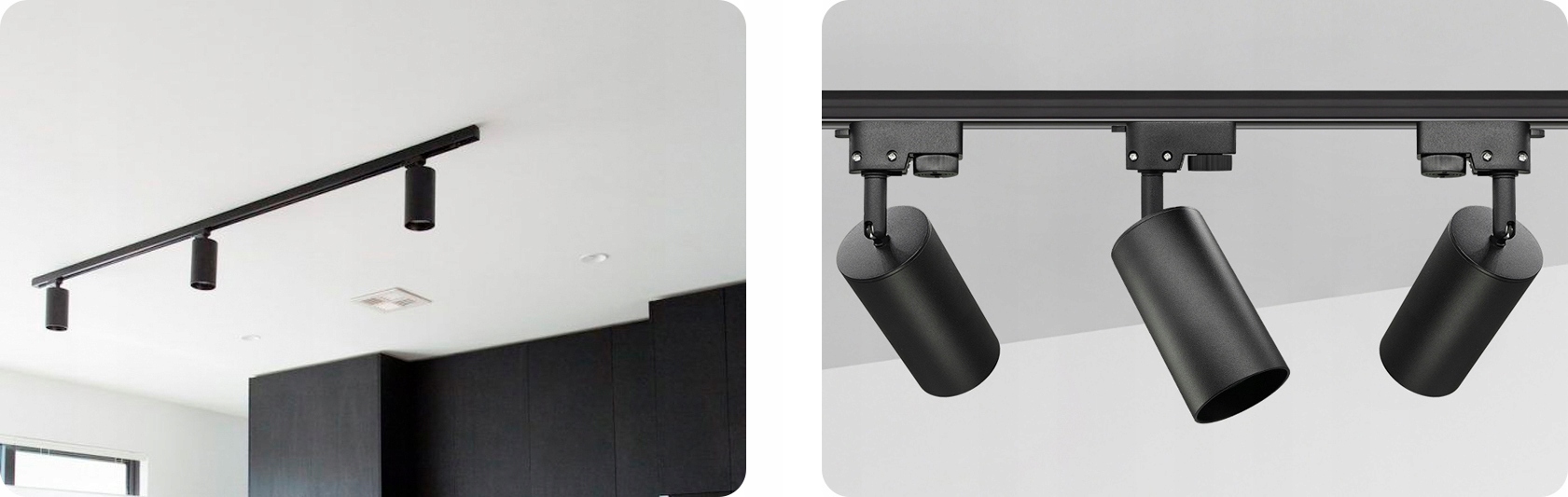 ЧЕРНЫЙ КРЕПЛЕНИЕ ДЛЯ ОТРАЖАТЕЛЯ GU10 - 3 шт. И ПОТОЛОЧНАЯ НАПРАВЛЯЮЩАЯ 100см