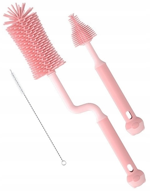 3x СИЛІКОНОВА ЩІТКА ДЛЯ МИТТЯ ПЛЯШОК ПУСТУШОК НАБІР ЩІТОК РОЖЕВОГО КОЛЬОРУ