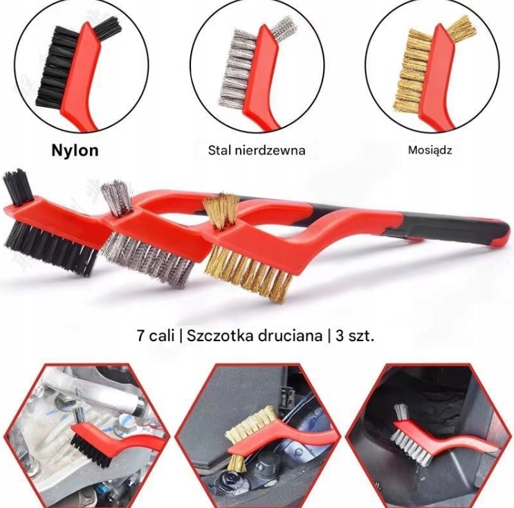 3x SZCZOTKI DRUCIANE STALOWE RĘCZNE TECHNICZNE DO RDZY METALU FARBY ZESTAW