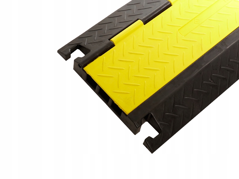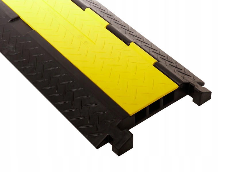 Трехканальный кабельный пандус — отличное решение, предназначенное для защиты кабелей от повреждения в результате наступления на них пешехода или удара колесами транспортного средства. Материал и способ изготовления позволяют использовать пандус на открытом воздухе, в различных погодных условиях. Поэтому он идеально подходит для мероприятий на открытом воздухе, концертов и фестивалей, где стоит временно обезопасить трассу кабелей. Накладка на порог изготовлена из пластика, имеет привлекательный желтый цвет и предупреждающие пиктограммы на поверхности. Эта модель 3-канального пандуса имеет длину 90 см и вес менее 13 кг, а благодаря системе крючков несколько частей можно соединить вместе, чтобы создать длинную систему прокладки кабеля. Помимо своей защитной функции, ввод поможет лучше организовать трассу пучков кабелей. Три канала размером 3 х 3,5 см каждый, между которыми можно разделить кабели, помогают поддерживать порядок.