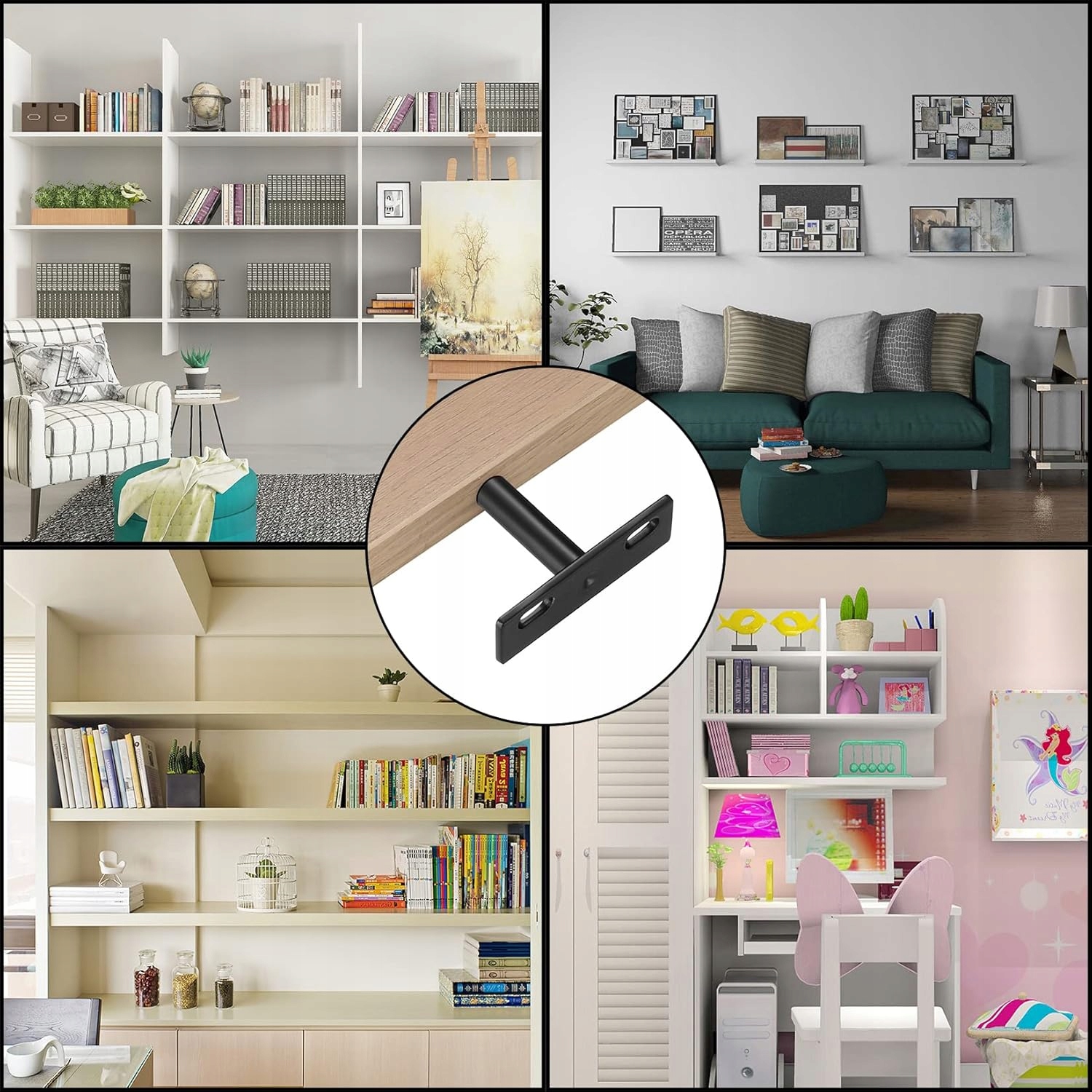 🔹 Легкая установка - t - -форма конструкции + набор винтов и дюбелей в наборе. Просто сверлите отверстия, прикрепите кронштейны и скользите на полке.