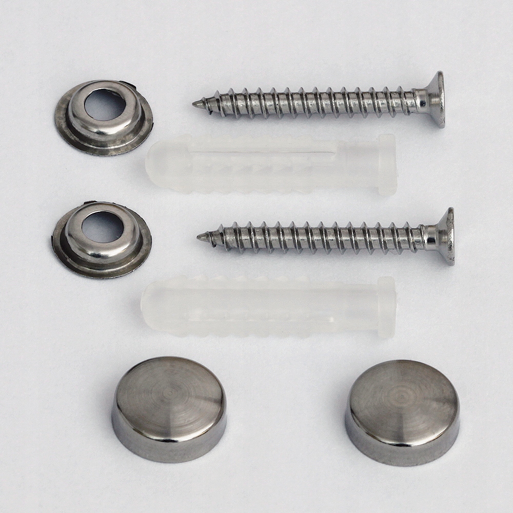 Крепежные винты: В комплект входят винты с бетонными дюбелями + дюбели, скрывающие нержавеющие колышки