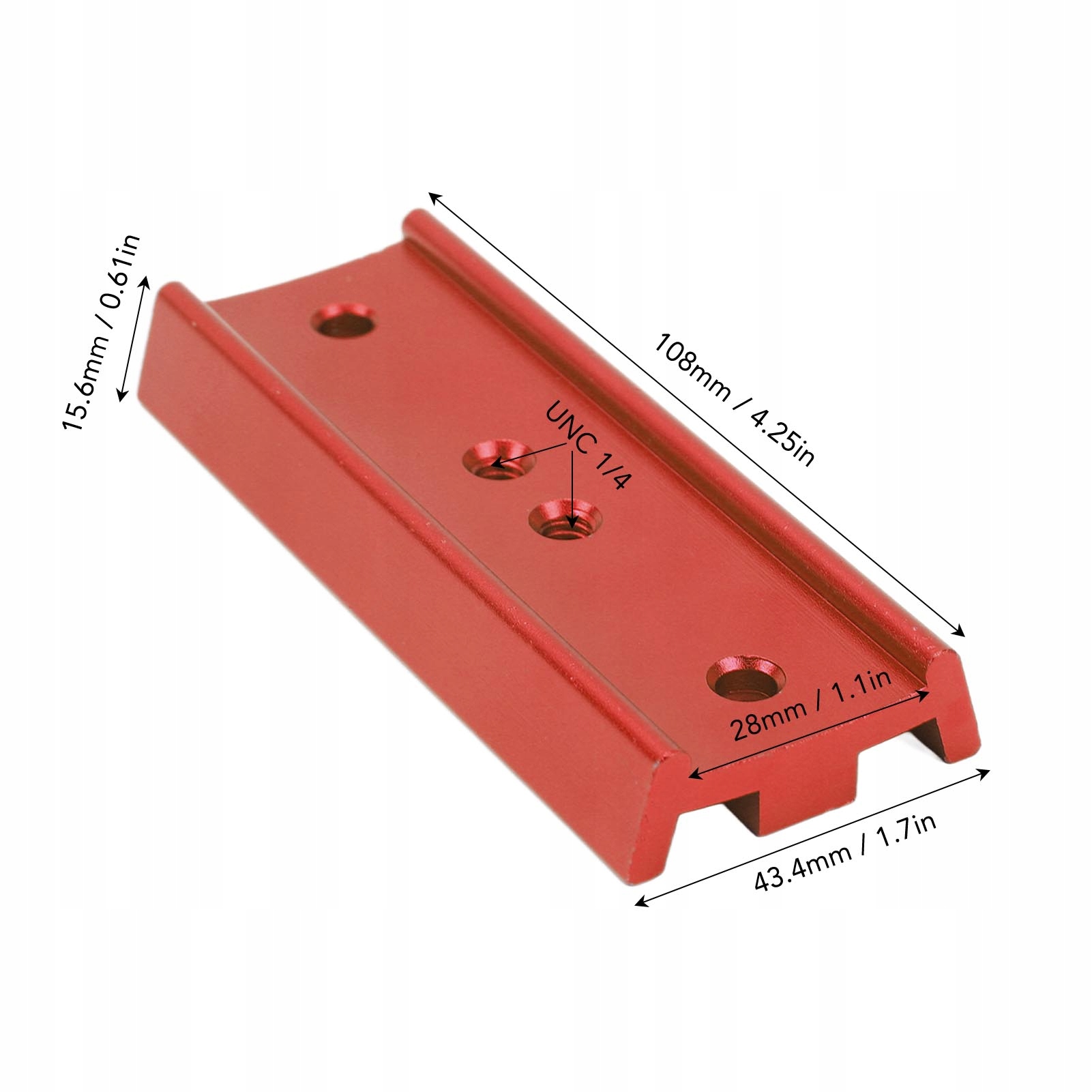 Размер: длина 108 мм/4,25 дюйма, ширина нижнего края 43,4 мм/1,7 дюйма, ширина передней канавки 15,6 мм/0,61 дюйма;