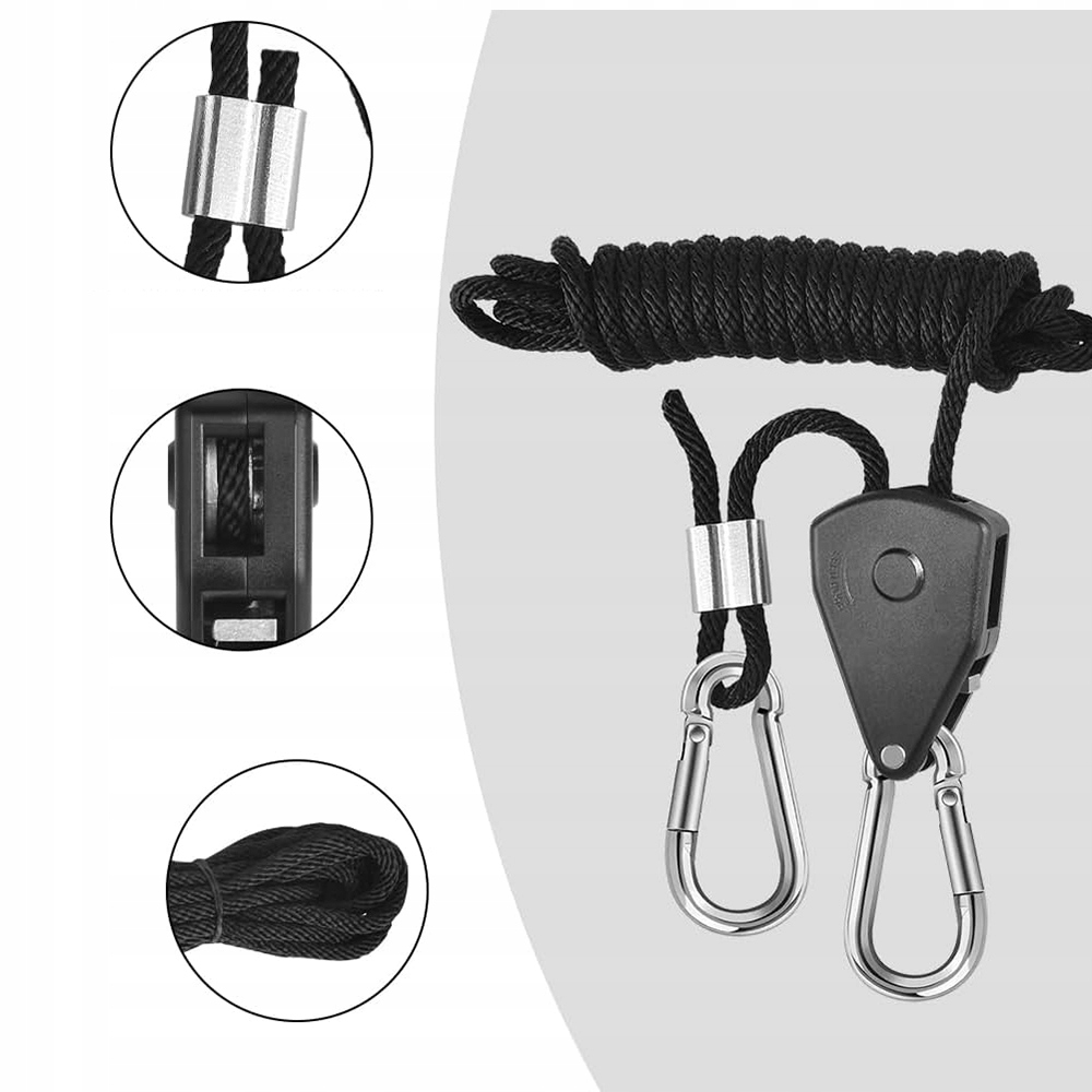 Регулируемый блок с веревкой имеет прочную металлическую коробку передач, благодаря которой веревка может быть быстро отрегулирована и заблокирована. Просто потяните свободный конец веревки, чтобы установить подвесные предметы на желаемой высоте.