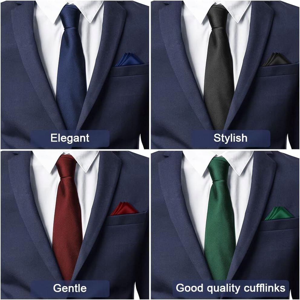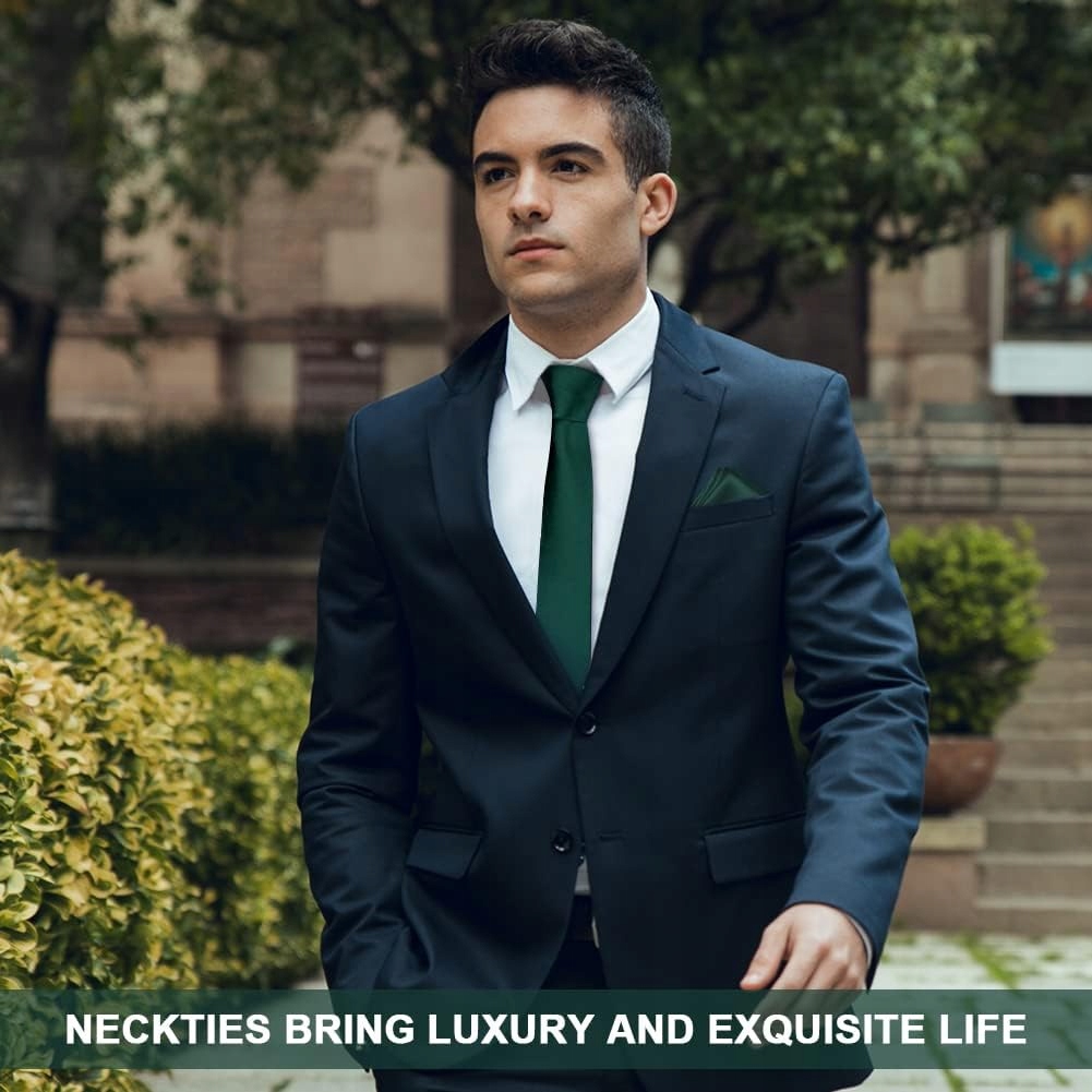 Aomig Men's Gines 4-часовые набор с карманным квадратом, темно-зелеными запонками
