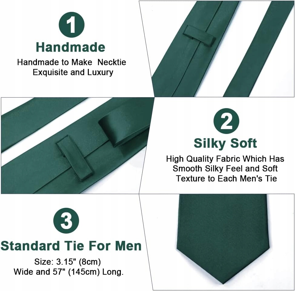 Мужские галстуки Aomig Men Ske 4 с карманной квадратной темно-зелеными запонками