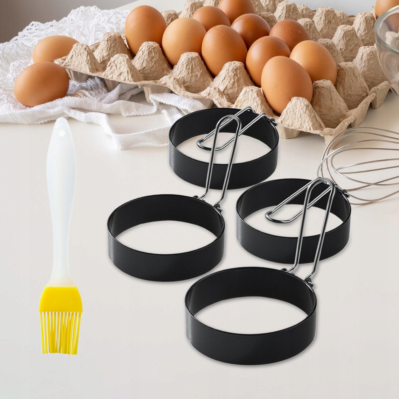 Кольцо из 4 частей для жареных яиц с щеткой для контакта с едой, простым в чистоте и не простите