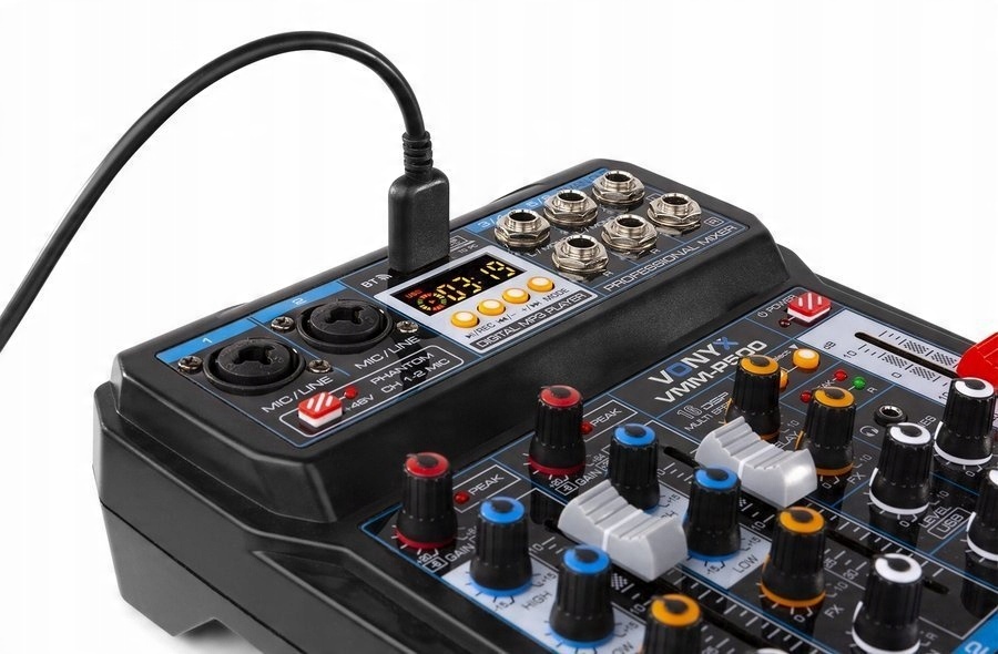 Vonyx VMM-P500 — это 4-канальный микшер с Bluetooth, DSP (цифровым звуковым процессором) и MP3-плеером. Цифровой звуковой процессор делает микшер идеальным для начинающего певца или вечера караоке. VMM-P500 также идеально подходит для небольших живых выступлений, что делает его компактным и универсальным микшером.
