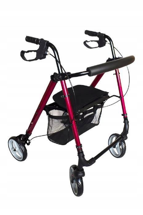 Легкие алюминиевые, складные, 4-колесные ходунки, оснащенные сиденьем, сумкой и стояночным тормозом. ЦВЕТ: КРАСНЫЙ