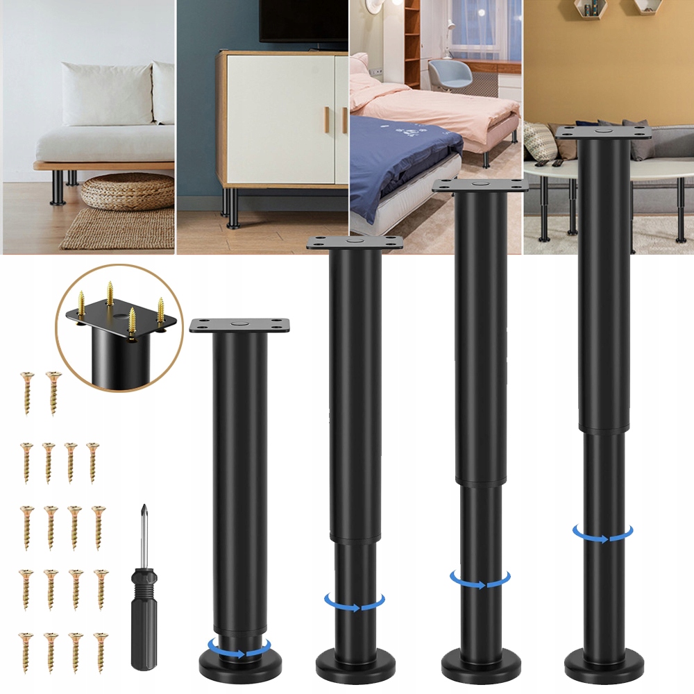 🗄️🗄️ Универсальное использование для создания организованной атмосферы: Наши регулируемые по высоте ножки для мебели идеально подходят для подставок под телевизор, тумбочек, тумбочек, кроватей и диванов. Хотите ли вы оптимизировать свою мебель или создать свои собственные творения – простая установка обеспечивает быструю реализацию. Замените ножки старой мебели или придайте своим проектам стильный акцент.