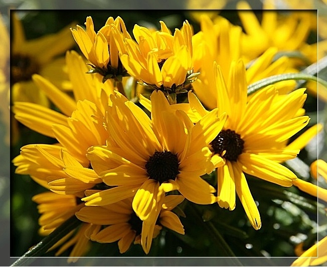 На каждом побеге собрано по несколько штук, напоминающих миниатюрные цветки подсолнечника.