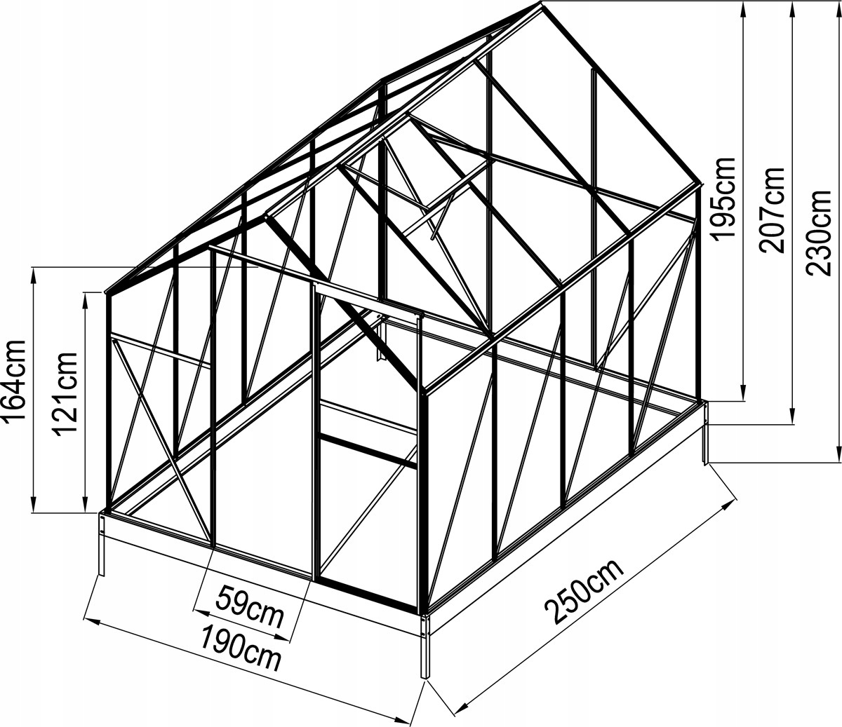 - Размеры: 250 x 190 x 195 см
