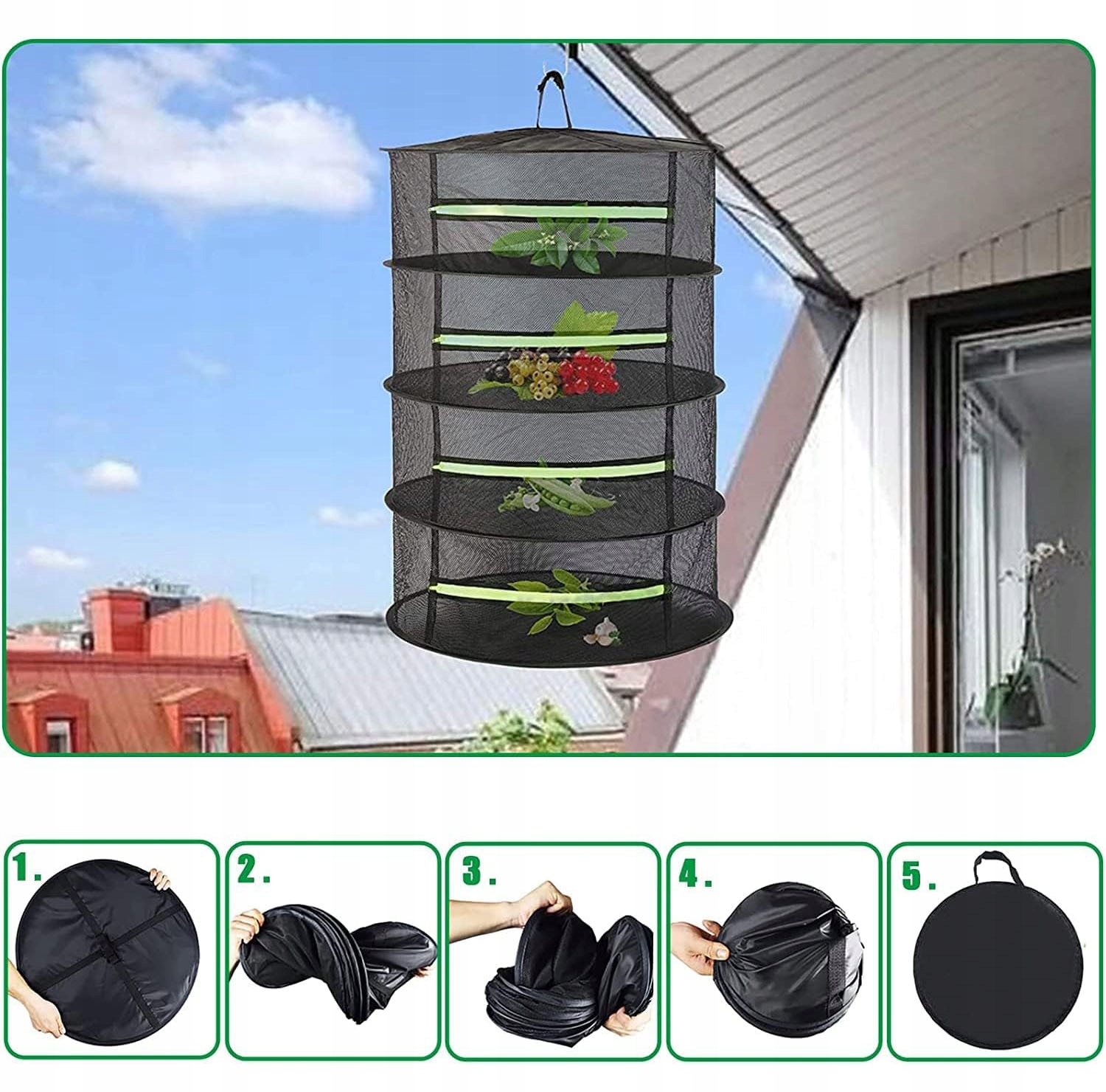 Использует дышащую сетку с высокой эластичностью и высокой прочностью на разрыв и обеспечивает эффективное проветривание. поток, эффективная циркуляция и вентиляция. 4-х слойная конструкция, высота каждого слоя 19 см. Он занимает мало места и может свободно использоваться в зависимости от количества вещей, подлежащих сушке. Каждый слой оснащен встроенным гибким стальным кольцом, которое обладает превосходными антиокислительными и деформационными свойствами, не деформируется и не ржавеет. Складную конструкцию можно собрать за считанные секунды и сложить для удобного хранения. Это экономит место. Закрытая молния позволяет легко открывать и закрывать. Защита от протечек на боковых стенках каждого слоя, не беспокойтесь о протечках. Идеально подходит для сушки различных предметов, таких как медикаменты, продукты питания, растения, крупы, зерно, специи, бобы, одежда и т. д.