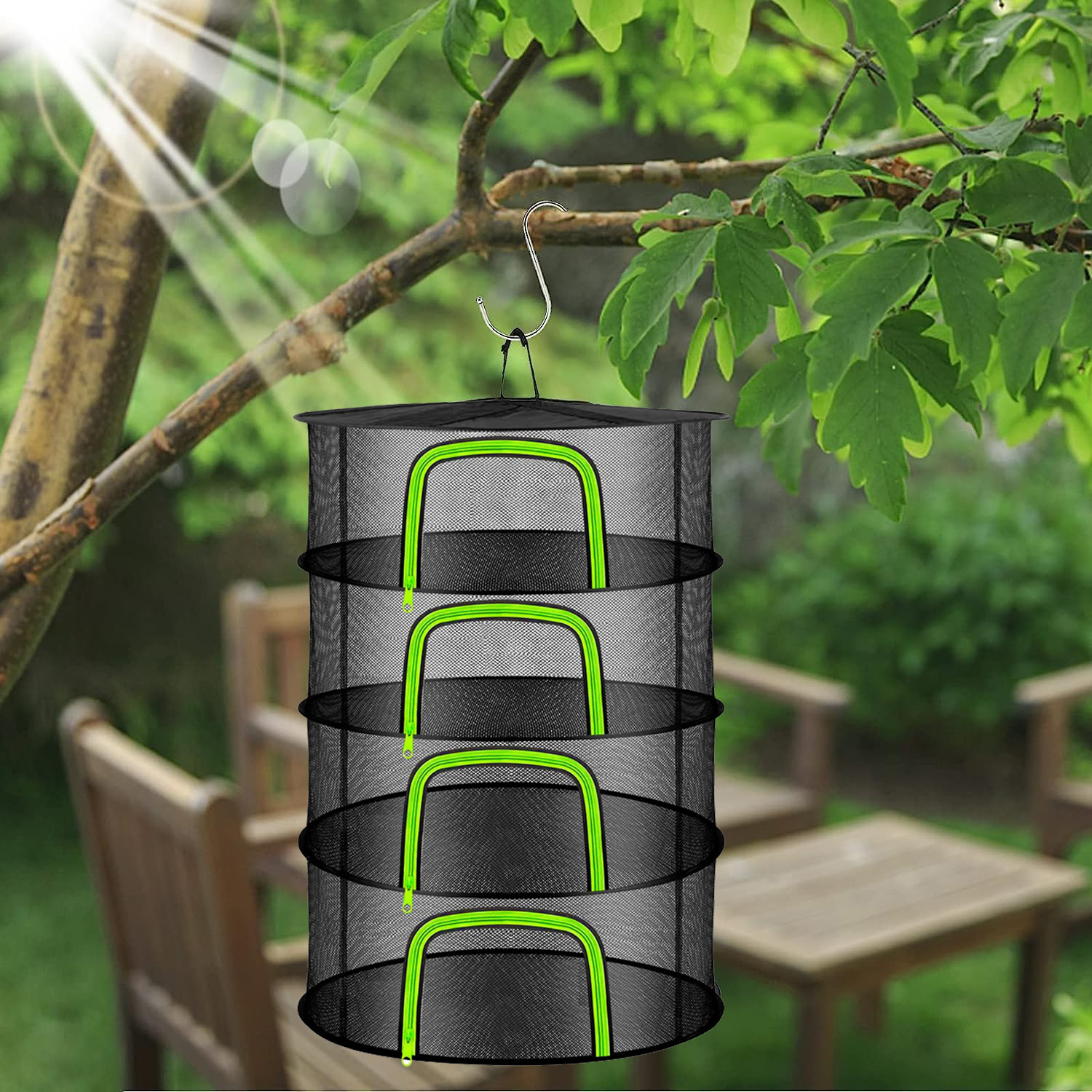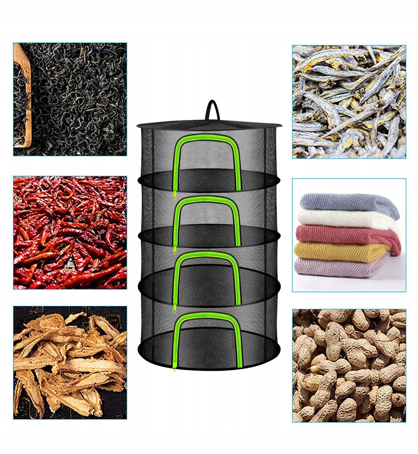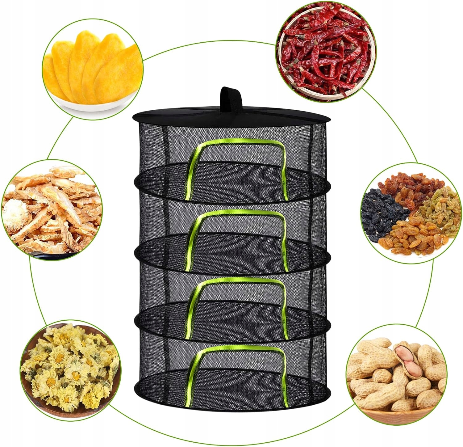 Сетка сушки имеет 4 слои с распределенным диаметром 60 см и высотой 20 см. На каждом слое достаточно места, чтобы высушить много растений и трав. Каждый слой имеет независимую молнию, которую можно отсортировать и высохнуть, чтобы избежать смешивания.
