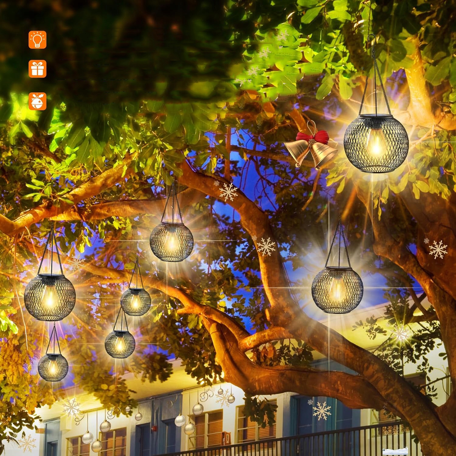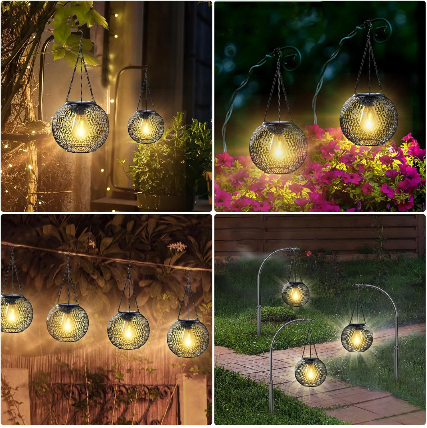 【Простая установка】 Установка быстрая, проводка не требуется. С помощью подвесной цепочки вы можете повесить этот солнечный фонарь на крючок или дерево или разместить солнечный фонарь в любом месте, где хотите украсить. Идеально подходит для сада, патио, газона, дорожки и двора.