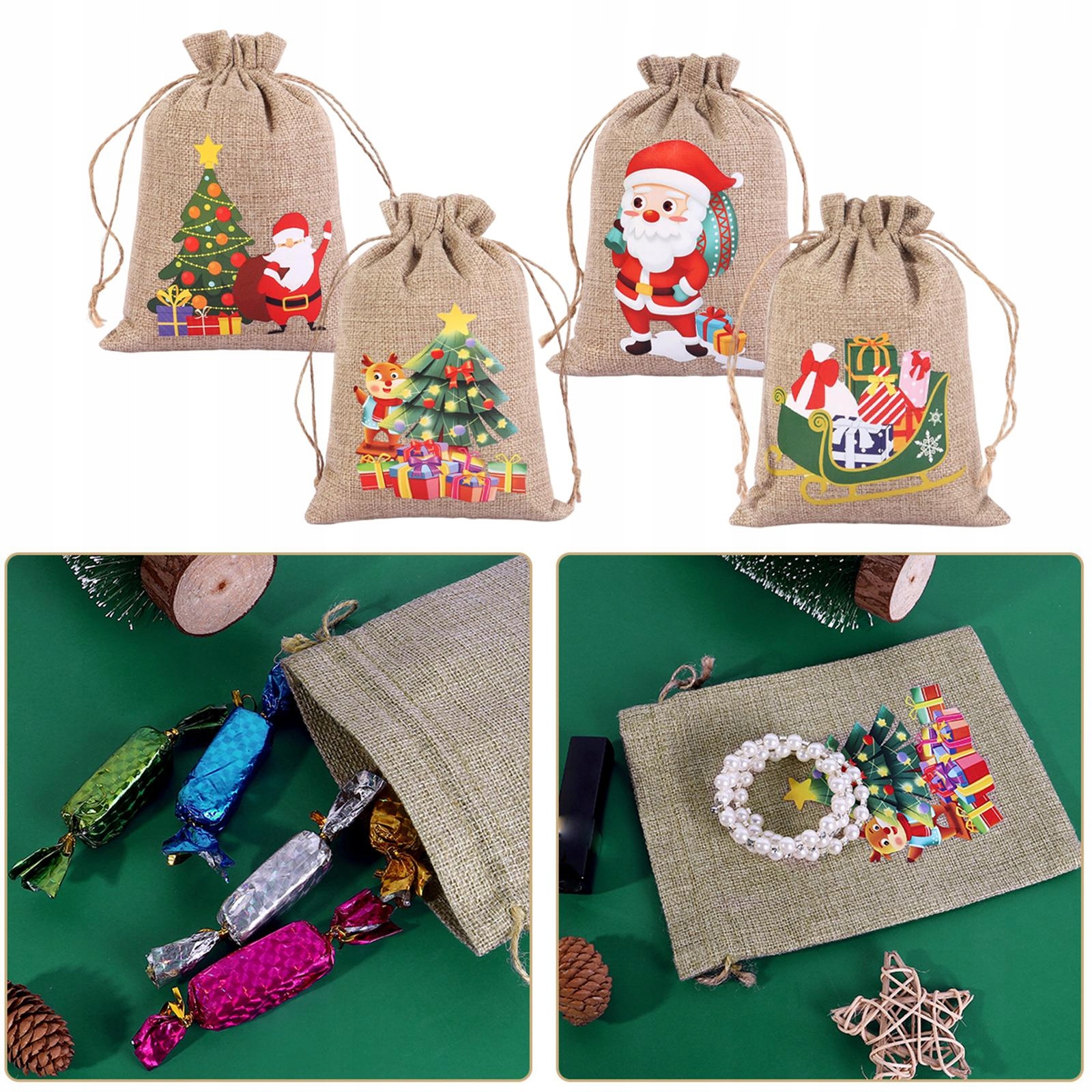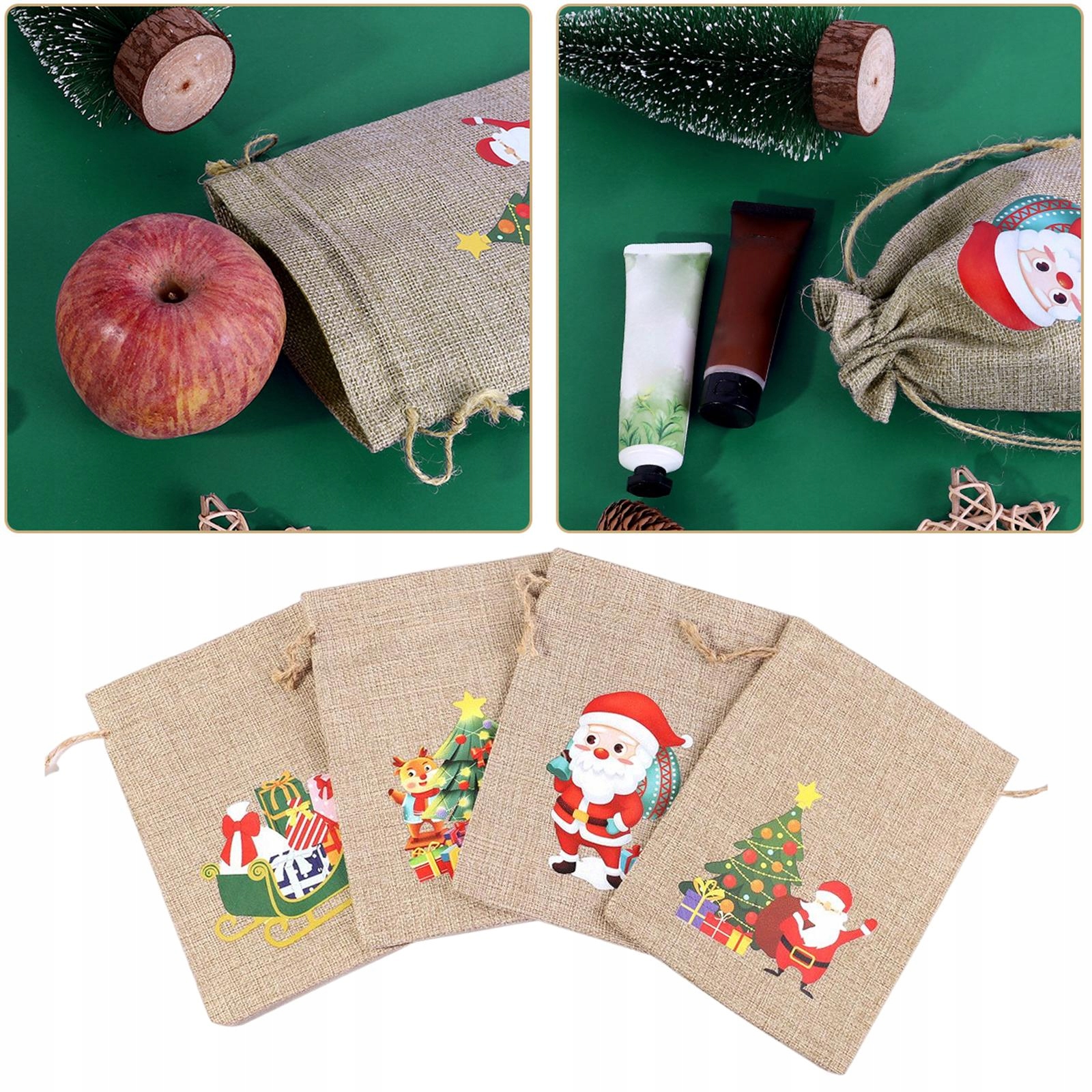 4 шт. багаторазових різдвяних подарункових пакетів із мішковини, пакетів для упаковки цукерок, святкових