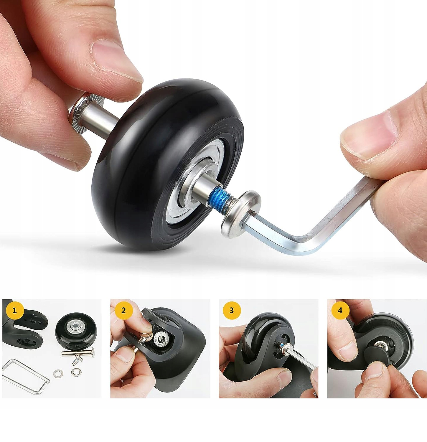 🧳🧳 Простота установки: запасные колеса для багажного чемодана легко упаковываются, легко устанавливаются без руководство пользователя. При сборке также следует обратить внимание на затяжку колеса, чтобы ролик багажного отделения мог лучше катиться.