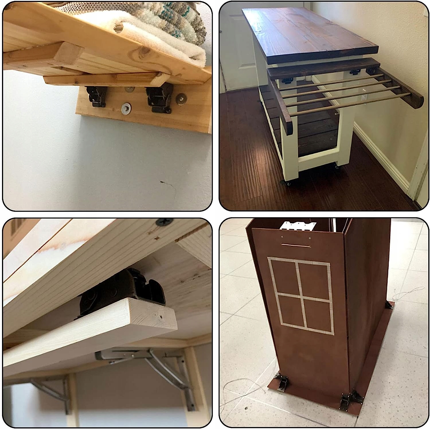Подставка идеально подходит для мест с ограниченным пространством и гибкостью, таких как кухни, розничные магазины и т. д. Подходит для ножек столов или поверхностей для складных столов или кроватей, сделанных своими руками, верстаков и т. д. Также может использоваться как простая невидимая подставка.