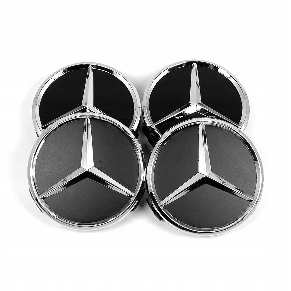 4 x ЧЕРНЫЕ КОЛПАКИ MERCEDES BENZ КОМПЛЕКТ ДИСКОВ 75 мм 4 ШТ.