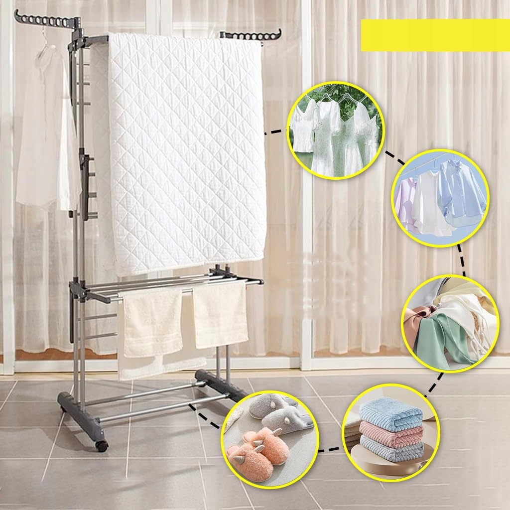 ➡️ Подходит где угодно: Эта 4-уровневая вешалка для одежды отлично работает как в помещении, так и на открытом воздухе. Вы можете использовать его на балконе, заднем дворе, прачечной или коридоре. А когда вы им не пользуетесь, просто сложите его, чтобы сэкономить место.