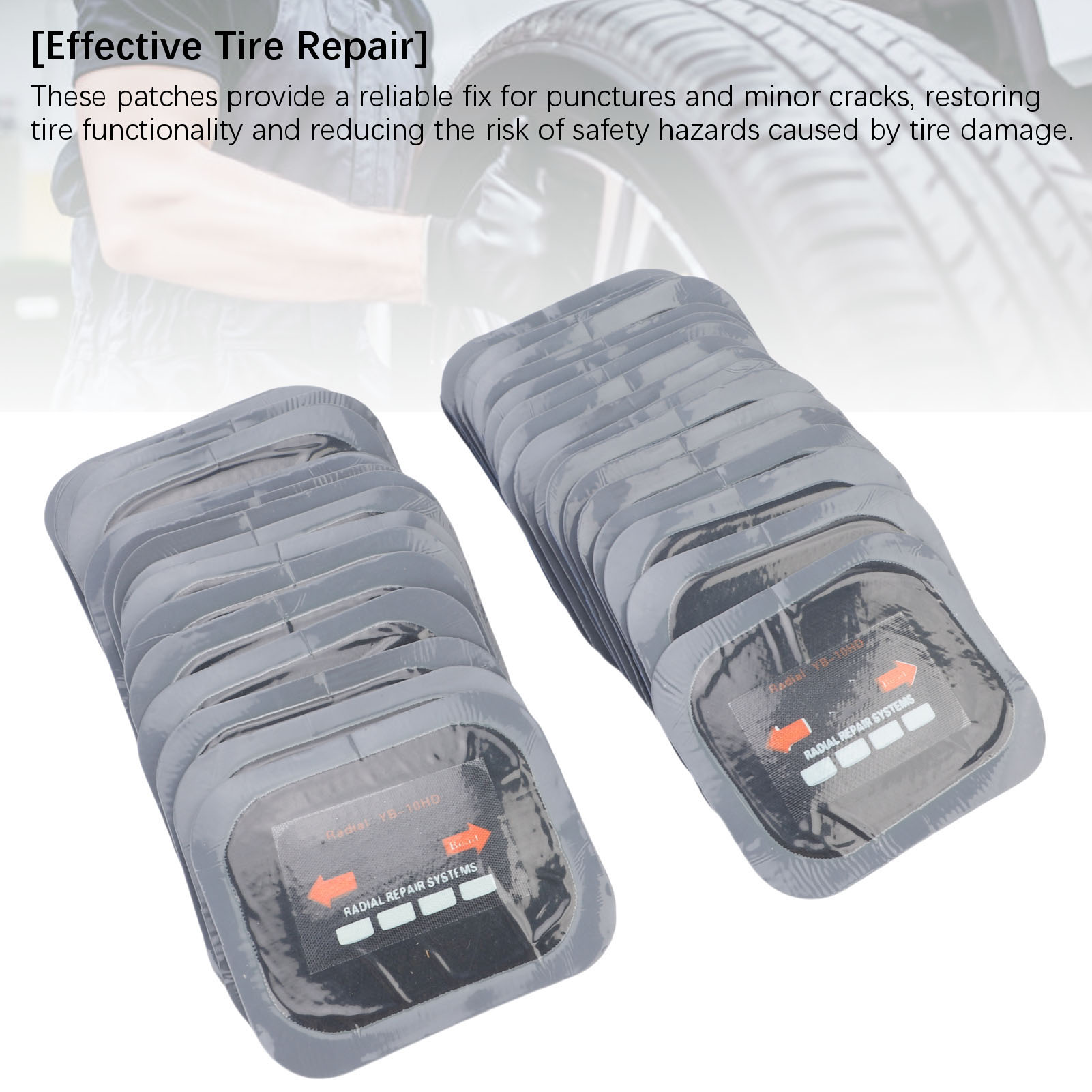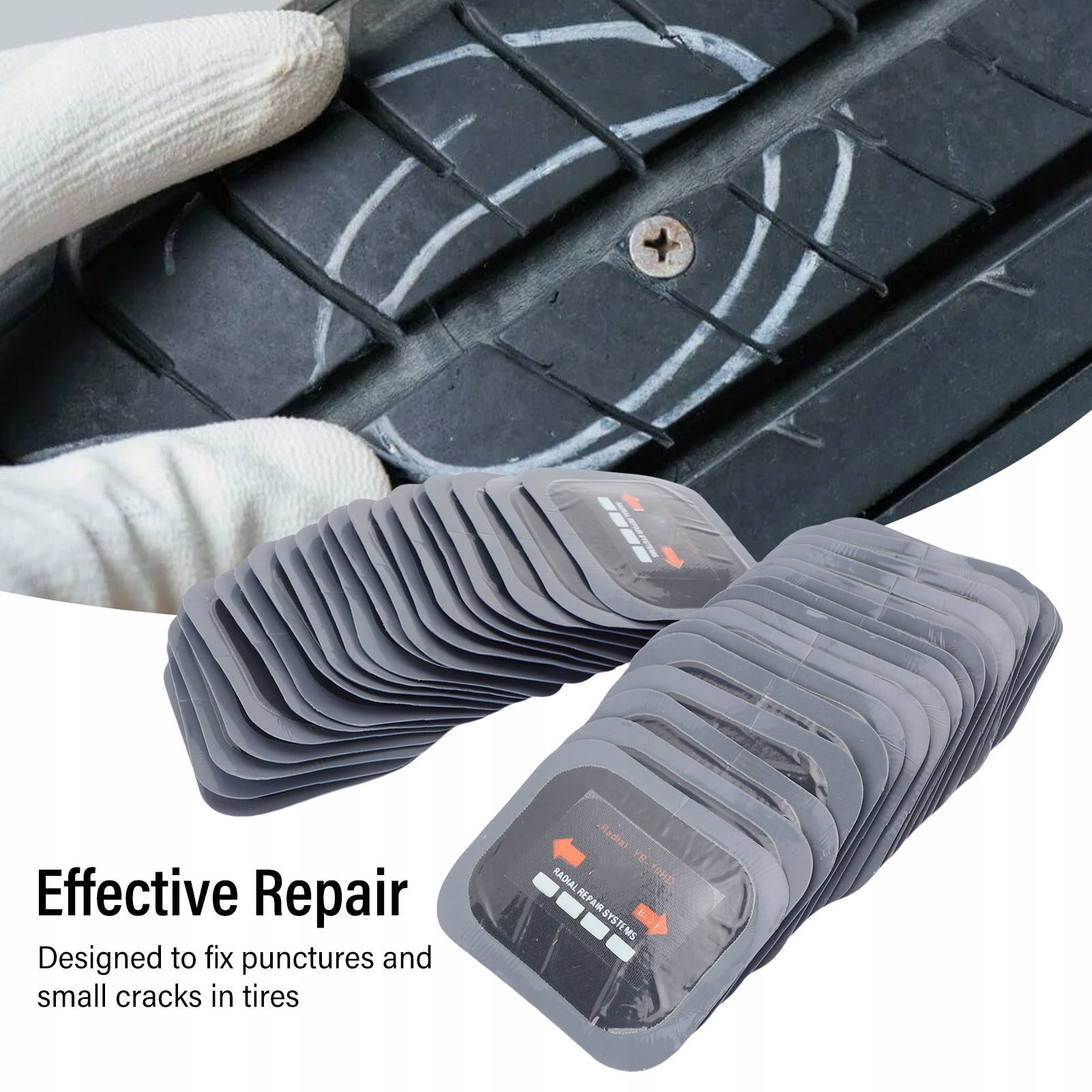 3. [Эффективный ремонт шин]: эти заплаты обеспечивают надежное исправление проколов и мелких трещин, восстанавливая функциональность шин и снижая риск угроз безопасности, вызванных повреждением шин.
