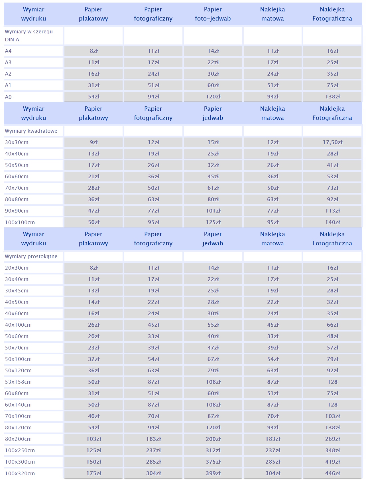 В приведенной ниже таблице мы представляем типы и форматы печатных изданий, которые мы можем распечатать для вас вместе с их ценами.